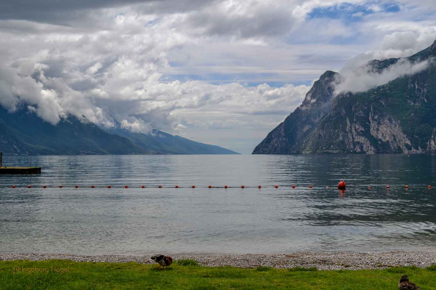 Der Blick über den See, Richtung Torbole und Richtung Stadt - viel Zeit für den ersten Cappucino am Lago, die Spatzen, Enten und Schwäne beobachten (und meinen Mann 🙂 ) - tief durchatmen, ich bin DA!