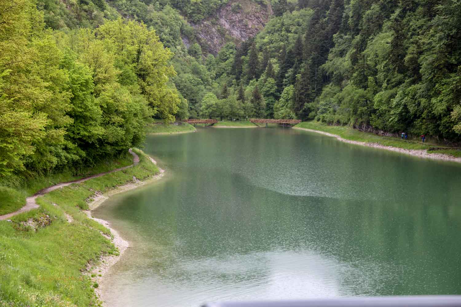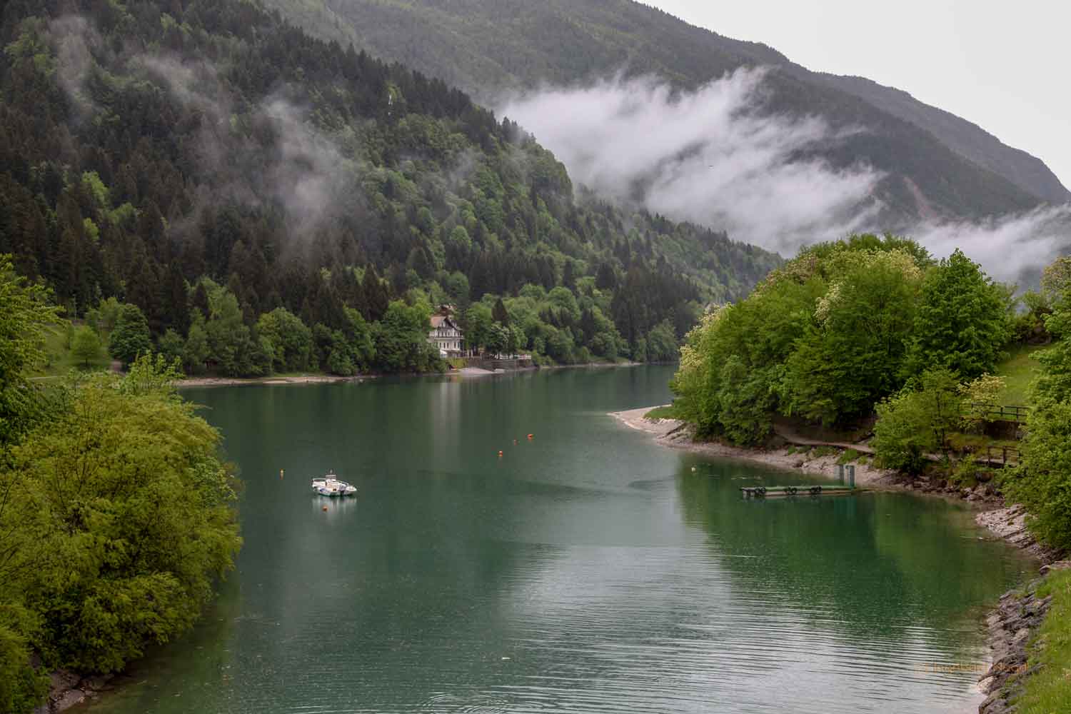 Nächstes Ziel war in etwa auf Höhe von Trient der Lago di Molveno, am Fuß der Brentagruppe. Nicht umsonst wurde dieser See schon dreimal als der schönste See ganz Italiens gekürt. Durch ein wunderschönes Örtchen ging es hinunter an den See. Und wie bestellt hörte der Regen auf, die Wolken verzogen sich etwas nach oben - und wir konnten endlich, ohne nass zu werden, aus dem Auto. Hier am Lago di Molveno gibt es auch einige Plätze zum Fotografieren und dem See so nah. Auch eine Kaffeepause musste sein, Zeit zum Durchatmen und ich beobachte immer wieder gerne die kleinen Fotomodels, die sich unbeobachtet fühlen 🙂