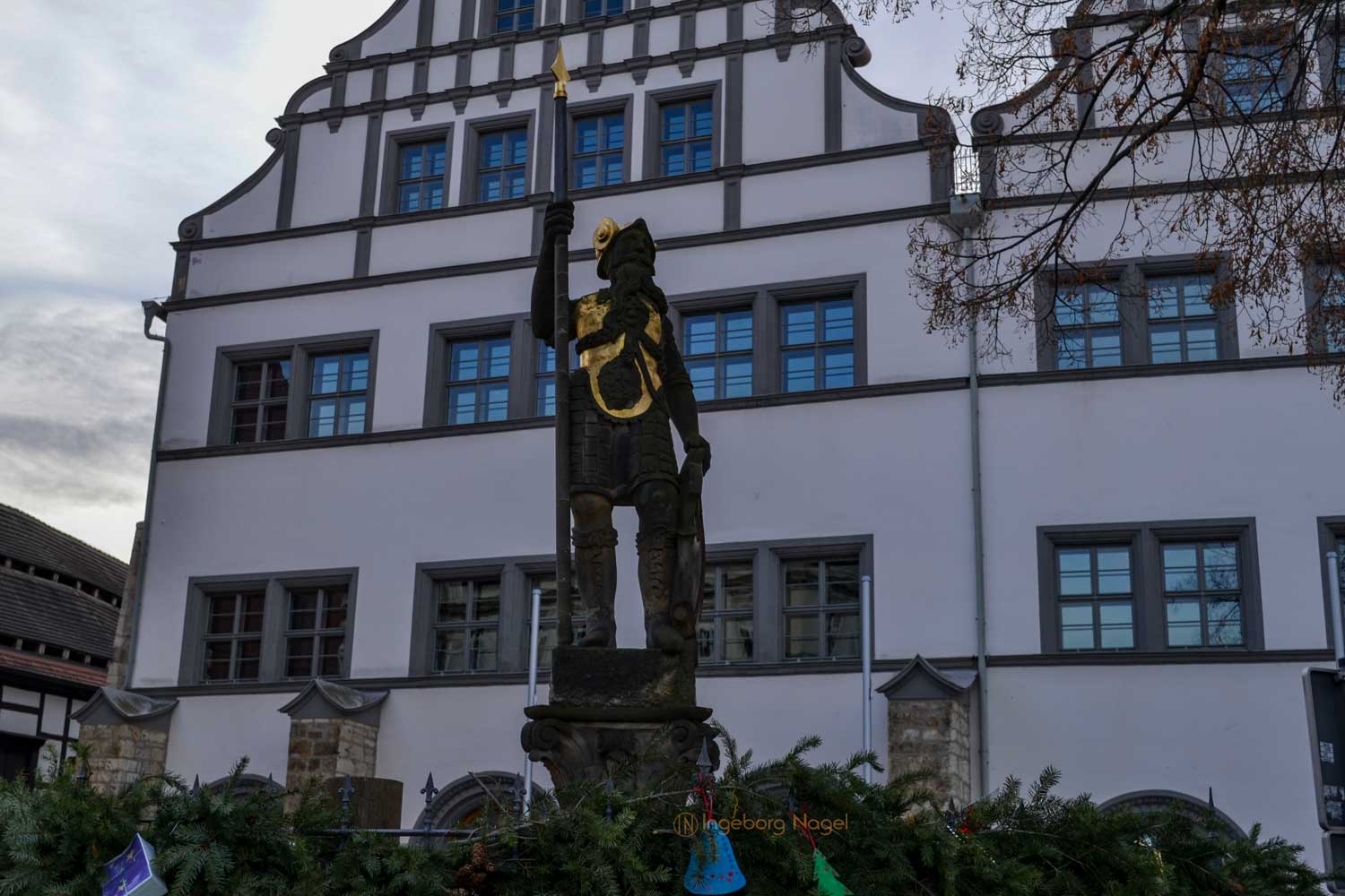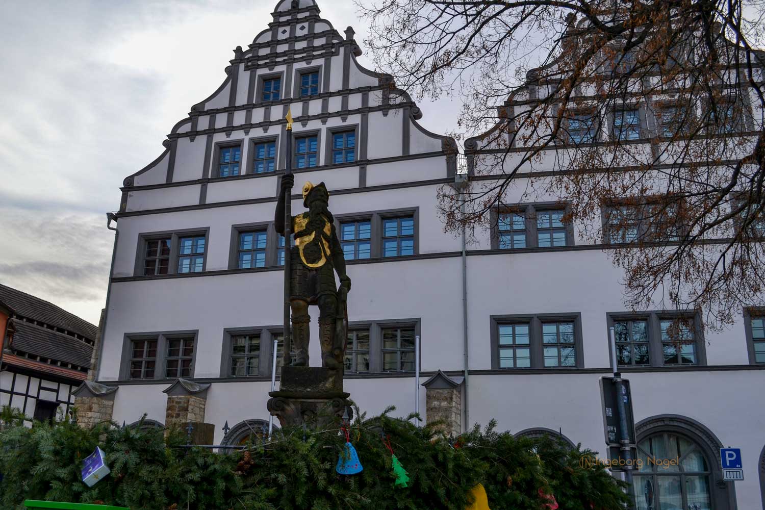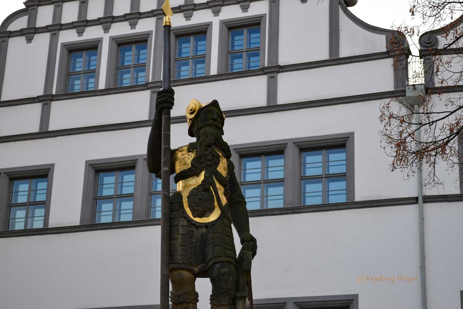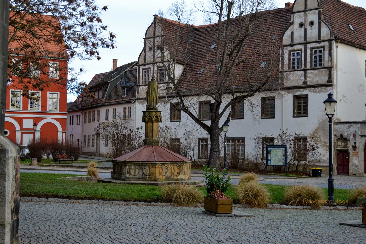 Der Marktbrunnen vor der Residenz, der den Heiligen Wenzel, den Stadtheiligen von Naumburg darstellt, ist seit 1459 erstmals erwähnt. Die Figur selbst stammt allerdings erst aus 1579. Erst 🙂 - beim Stadtrundgang war ich immer wieder überrascht, wie viele alte Schätzchen diese Stadt zeigt.
