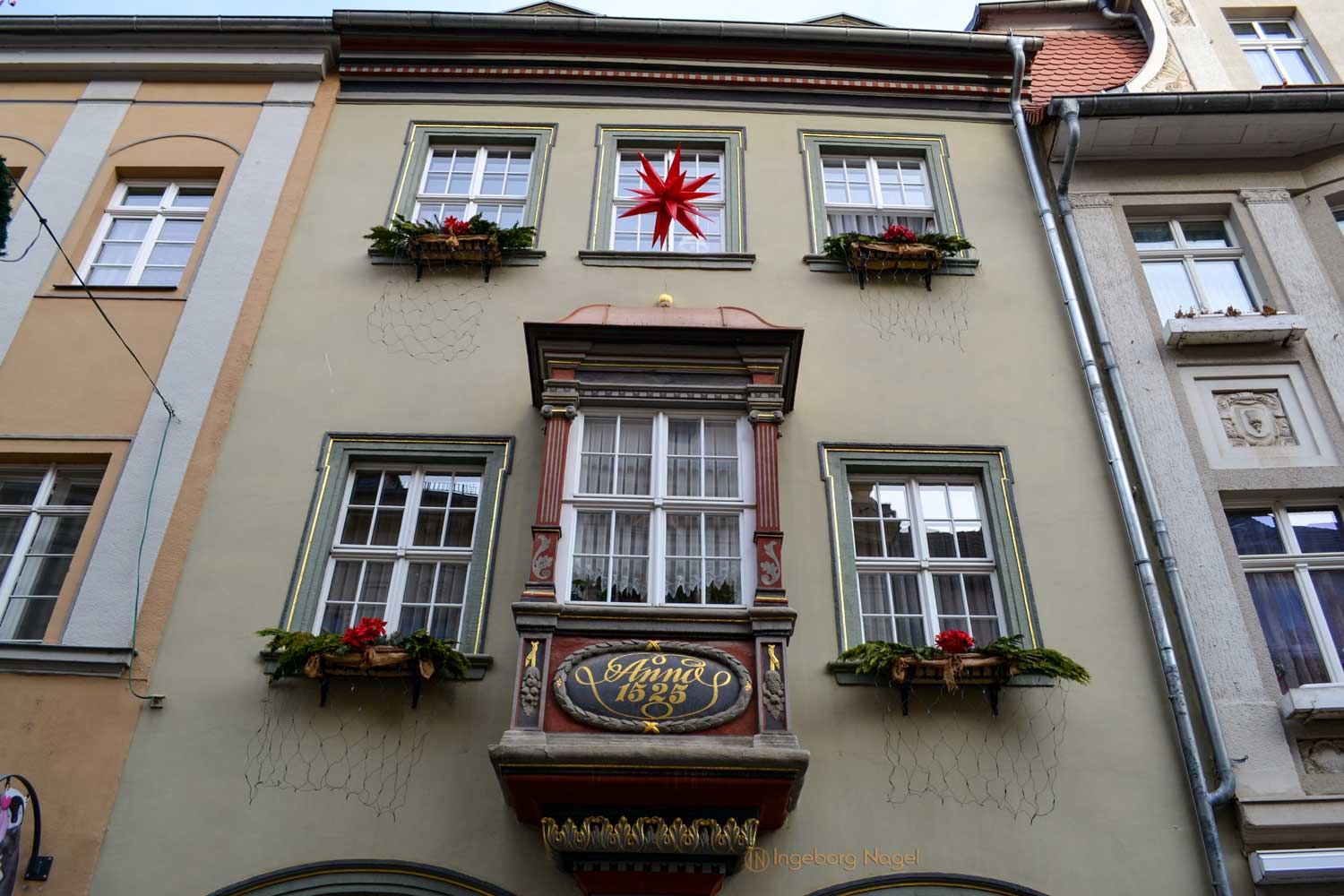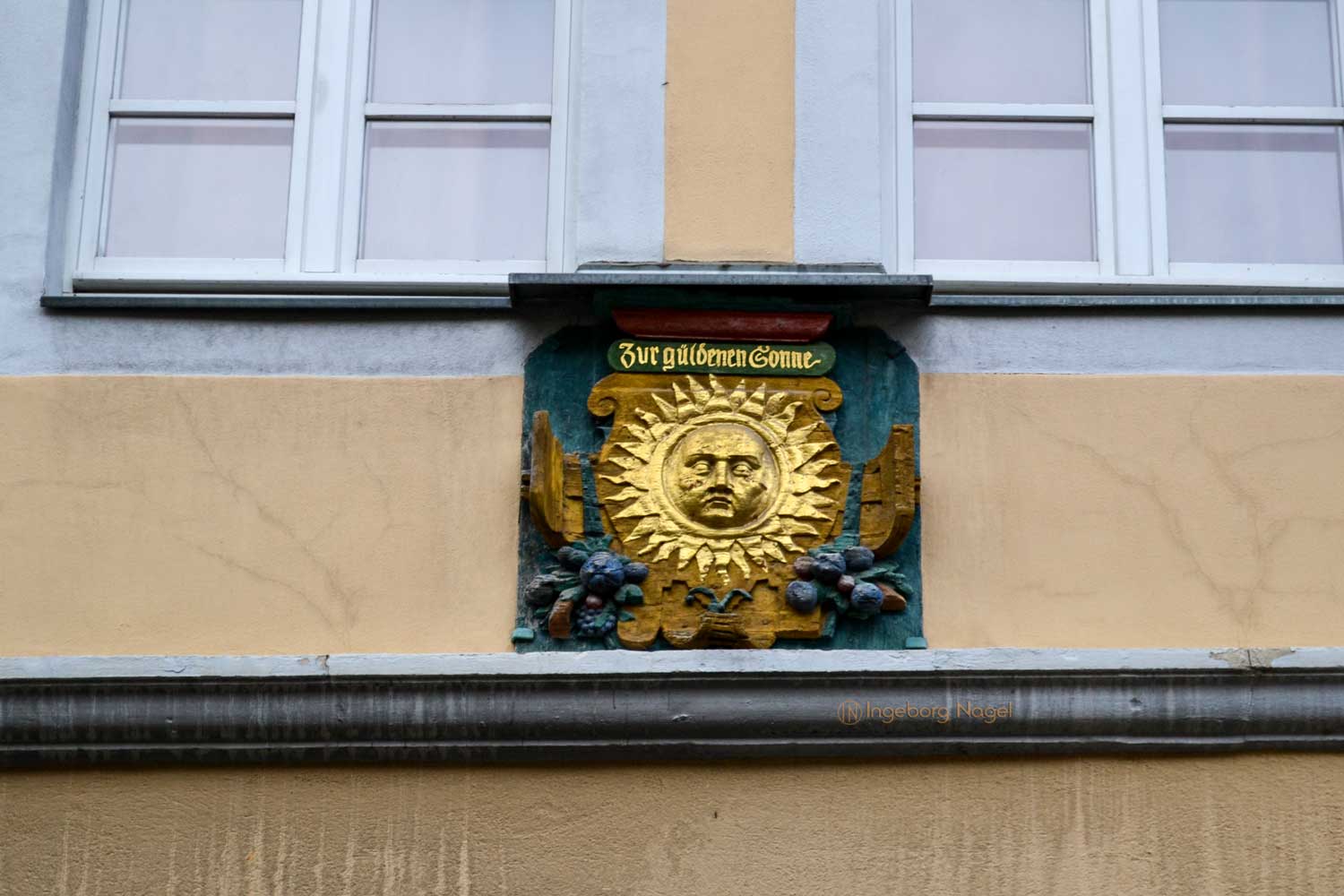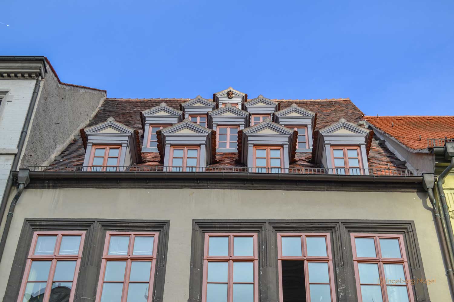 Weiter geht es durch die Herrenstraße, die bereits 1314 erwähnt ist und damit auch zu den ältesten Straßen Naumburgs gehört. Benannt wurde sie nach den DomHERREN, deren Weg auf dieser Straße in die Stadt führte. Diese repräsentativen Häuser wurden nach dem großen Stadtbrand 1517 errichtet. Und spätestens jetzt bei den Fotos wisst ihr, was ich mit dem 'Hans guck in die Luft' gemeint habe. Die interessantesten Kleinigkeiten spielen sich oben ab ....