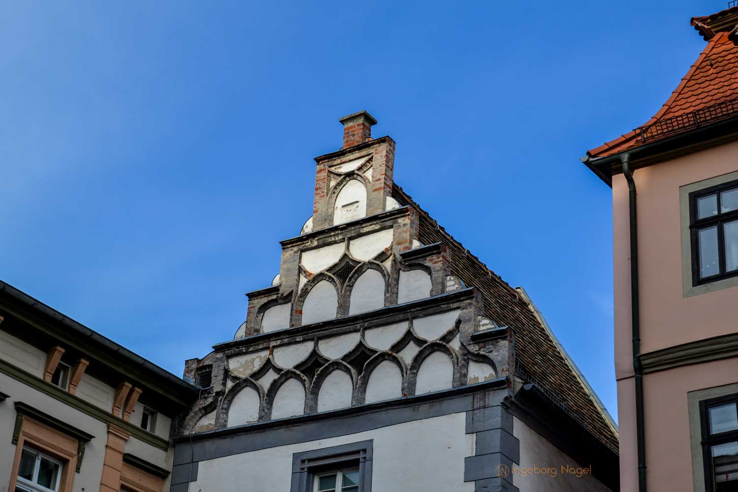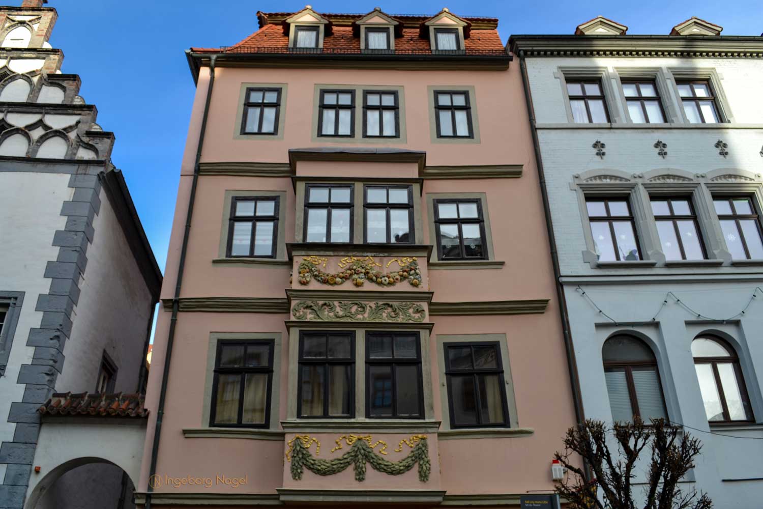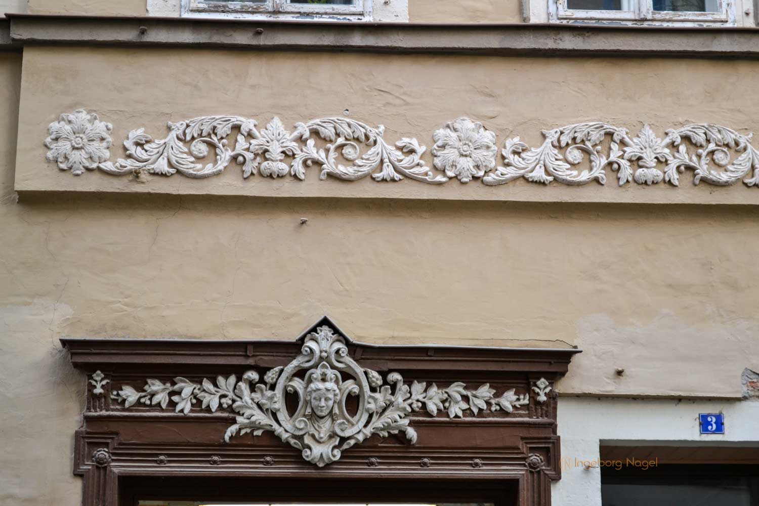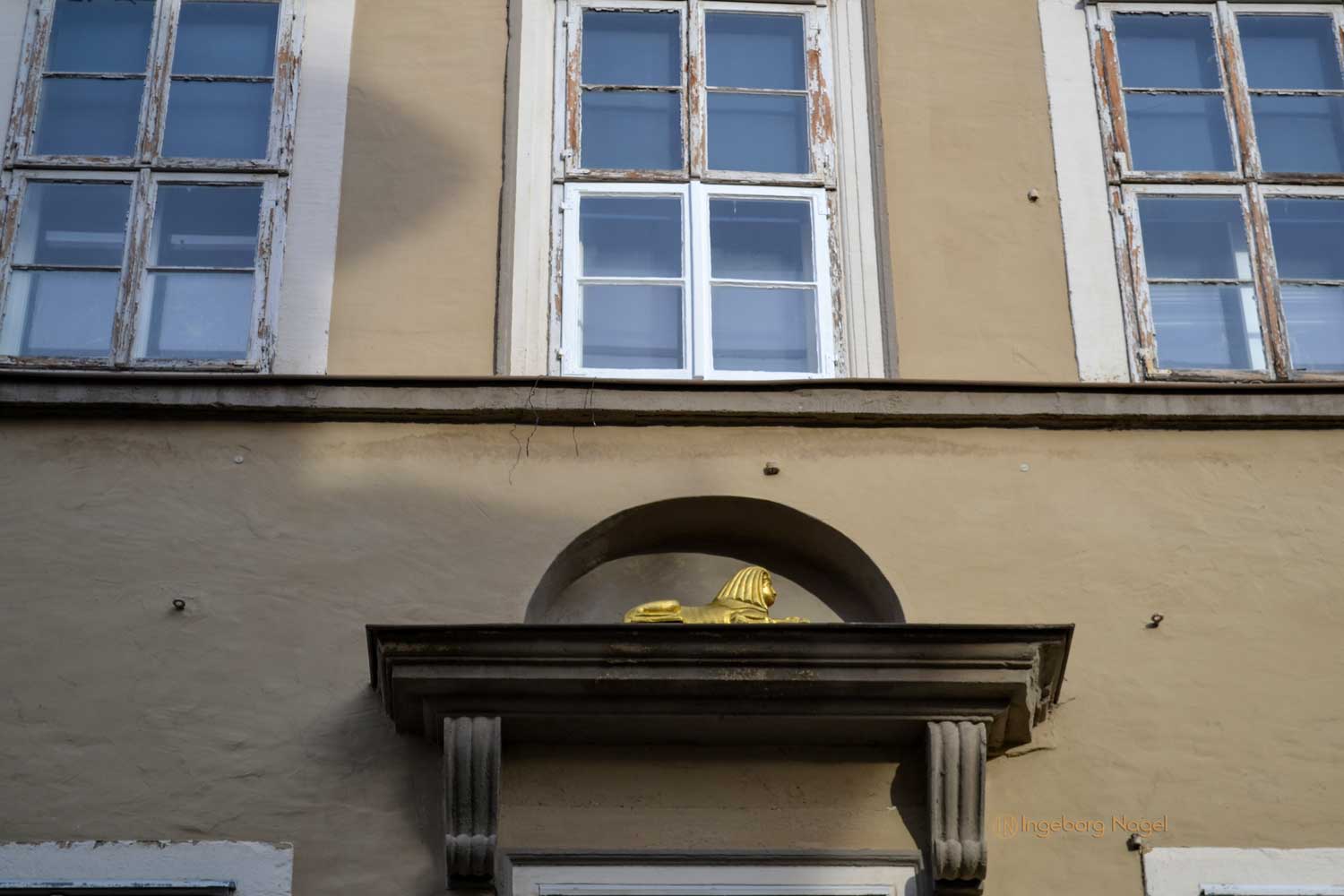 Weiter geht es durch die Herrenstraße, die bereits 1314 erwähnt ist und damit auch zu den ältesten Straßen Naumburgs gehört. Benannt wurde sie nach den DomHERREN, deren Weg auf dieser Straße in die Stadt führte. Diese repräsentativen Häuser wurden nach dem großen Stadtbrand 1517 errichtet. Und spätestens jetzt bei den Fotos wisst ihr, was ich mit dem 'Hans guck in die Luft' gemeint habe. Die interessantesten Kleinigkeiten spielen sich oben ab ....