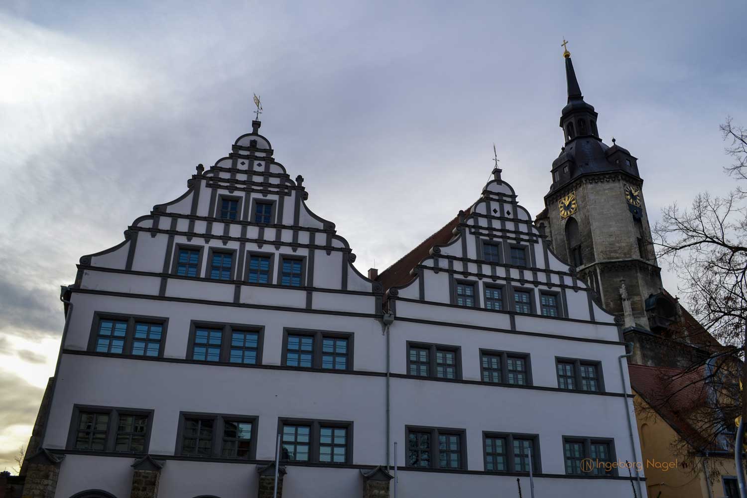 Am Ende der Herrenstraße kommt man auf dem Marktplatz an. Es ist lohnenswert, sich hier alles ausgiebig anzuschauen. In der Nordwestecke des Marktes fällt sofort das Stadtmuseum mit seinem spätgotischen Staffelgiebel auf. Es ist das älteste fast vollständig erhaltene Gebäude der Bürgerstadt. Einmalig am Markt ist die architektonische Geschlossenheit der im Renaissance- und Barockstil erbauten Häuser, die nach dem Stadtbrand 1517 auf den Vorgängerbauten entstanden sind. Auffällig sind die mehretagigen Dachaufbauten, immer anders gestaltet. Sie dienten im Mittelalter als Warenspeicher und erinnern an die Zeit als reiche Messestadt. Auch die Erker lohnen einen Blick. Berühmte Persönlichkeiten weilten in einigen der prachtvollen Bürgerhäuser, so zum Beispiel Martin Luther.