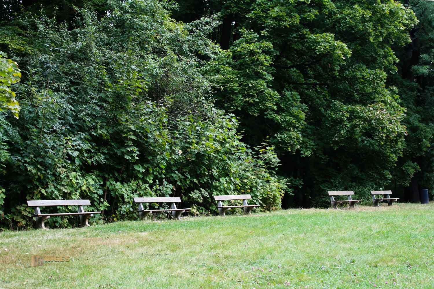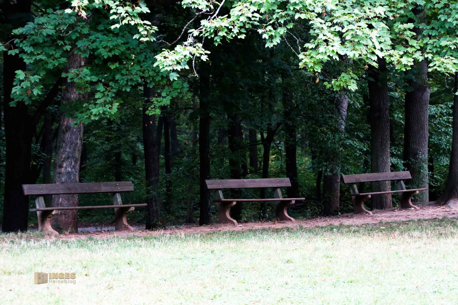Ganz viele Parkbänke laden in der Allee zum verweilen ein ...