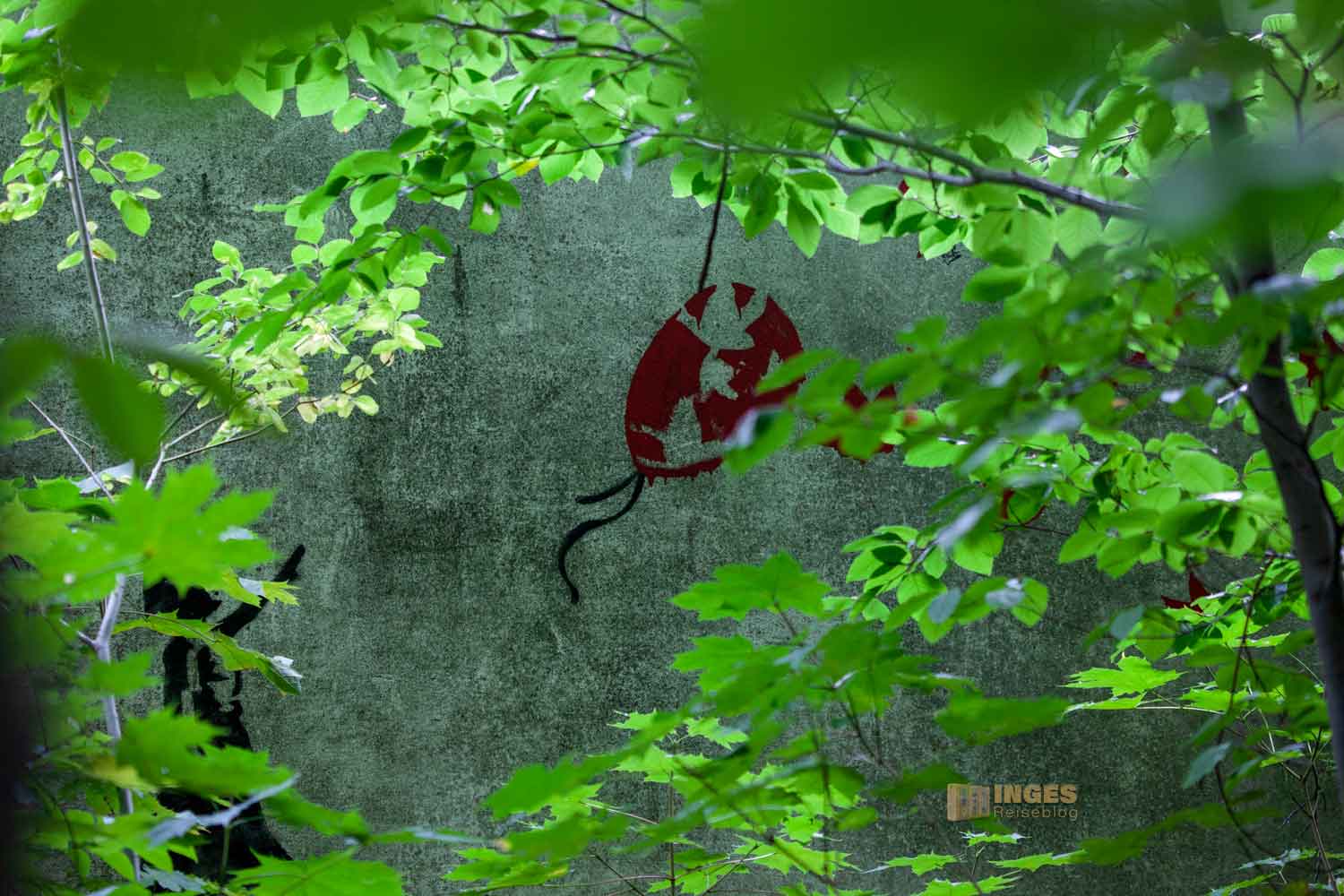 Ich kann ja allgemeines Geschmiere an Wänden, Treppen oder alles was man findet, so überhaupt nicht abhaben. Aber bei diesem Blick nach rechts zur Mauer, musste ich dann doch schmunzeln.