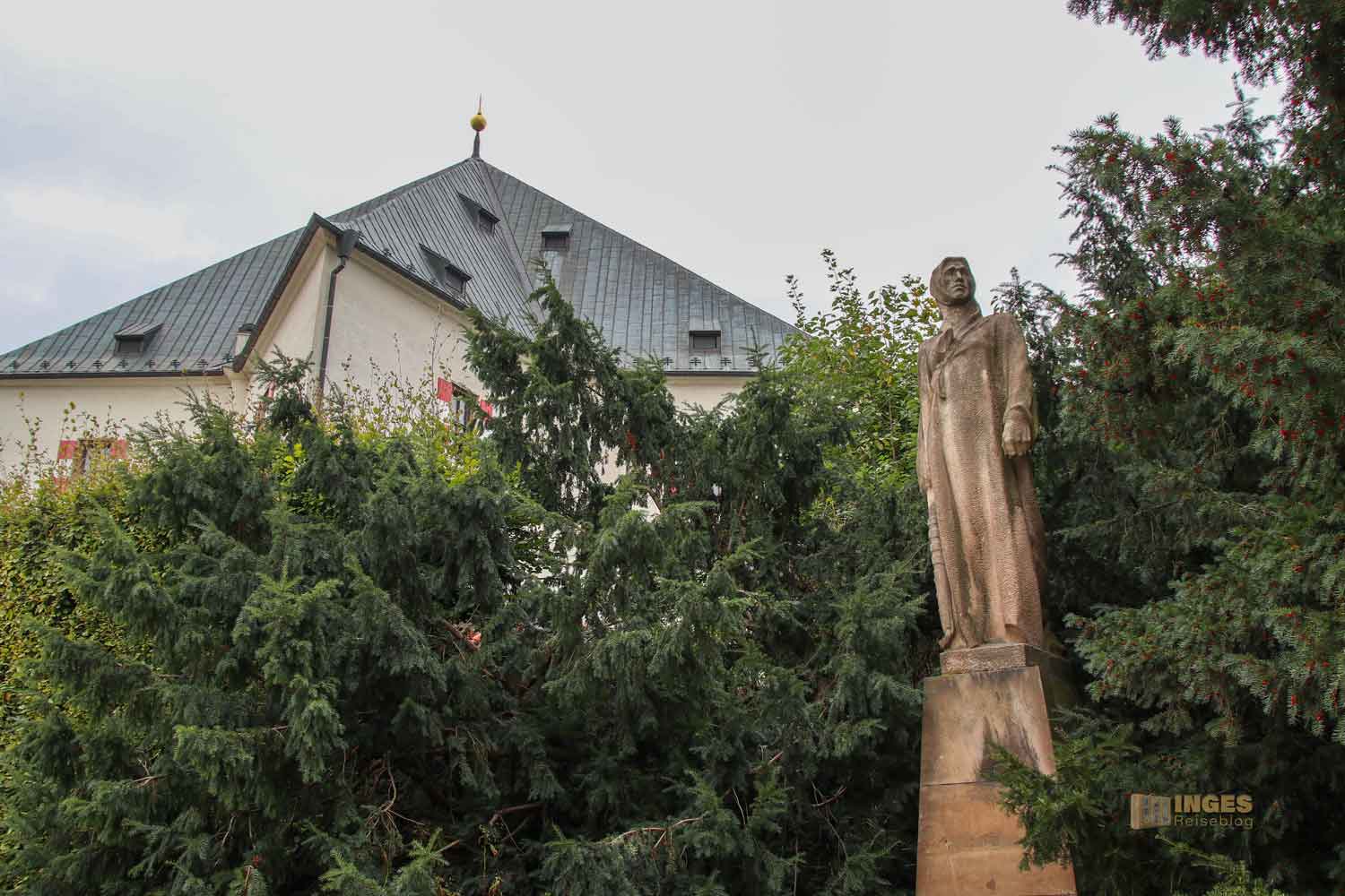 Vor Schloss Stern hat eine hussitische Kämpferin seit 1959 einen Platz bekommen. Noch lange vor der Schlacht am Weißen Berg, kämpften die Hussiten gegen die römisch-katholische Kirche, die der jeweilige Kaiser vertritt. Nachdem Jan Hus 1415 nach dem Konstanzer Konzil den Feuertod fand, wurde die Bewegung sogar noch stärker und mündete in verschiedene Hussitenkriegen. Schlussendlich konnten sich diese Bewegung jedoch nicht durchsetzen. Nachdem ihnen zwar 1512 die gleichen Rechte wie den Katholiken zugestanden wurden, näherten sie sich dann aber im Lauf des 16. Jahrhunderts, und vor allem nach der Niederlage bei der Schlacht am Weißen Berg, den Lutheranern an.