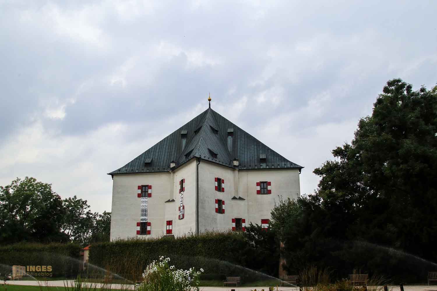 bei dem wir allerdings vor verschlossenen Toren standen. Nein, ich hatte es tatsächlich noch nicht drauf, auch nicht, nachdem wir am Vortrag schon beim Kloster Emmaus in der Prager Neustadt vor verschlossenen Türen standen, nach den jeweiligen Öffnungszeiten zu googlen. Ihr ahnt es? Ausgerechnet an unserem Besuchertag, Montag, ist das Schloss geschlossen. Das Schloss kam also für die Innenbesichtigung auf unseren "Wenn wir noch Zeit haben-Zettel", und wir begnügten uns mit dem was uns zur Verfügung stand 😉