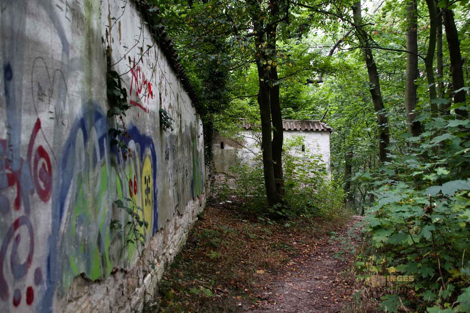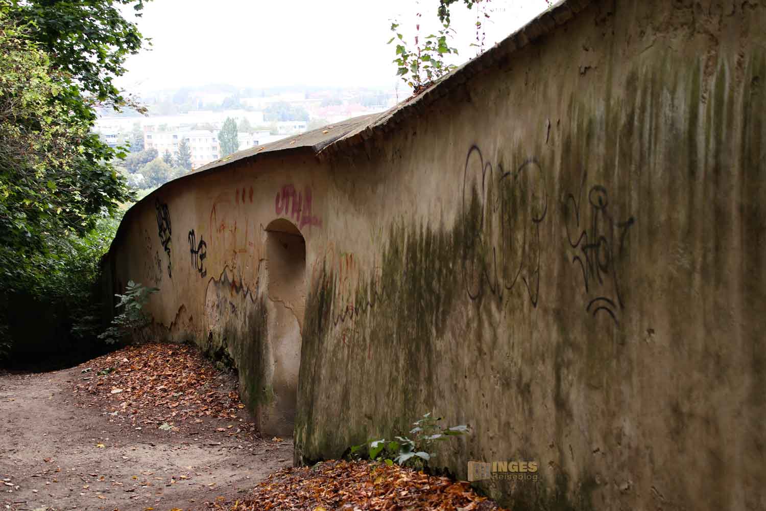 Denn mit nur wenigen Schritten waren wir an der Mauer, die das Gelände von Schloss Stern umzäunt. Kommt mit zu