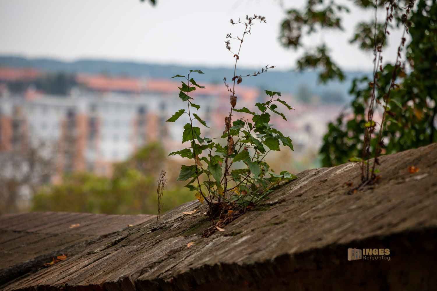 Keiner von uns beiden wusste, ob wir denn irgendwie auch nach links den Berg hochkommen, denn durch die Bäume sahen wir das Zackendach von Schloss Stern blitzen. Bis mein Mann einen breiteren Trampelpfad Richtung Schloss entdeckte. "Wir könnten doch ...?" DER Satz, der uns auf unseren Reisen begleitet. In Hamburg hat er an einem Tag in einen regelrechten Besichtigungsmarathon ausgeartet, wo meine Beine kurz davor waren, in den Streik zu treten. Der uns dadurch aber auch schon tolle Entdeckungen bescherte, denn die Überlegung endet meistens mit "Wir tun!"