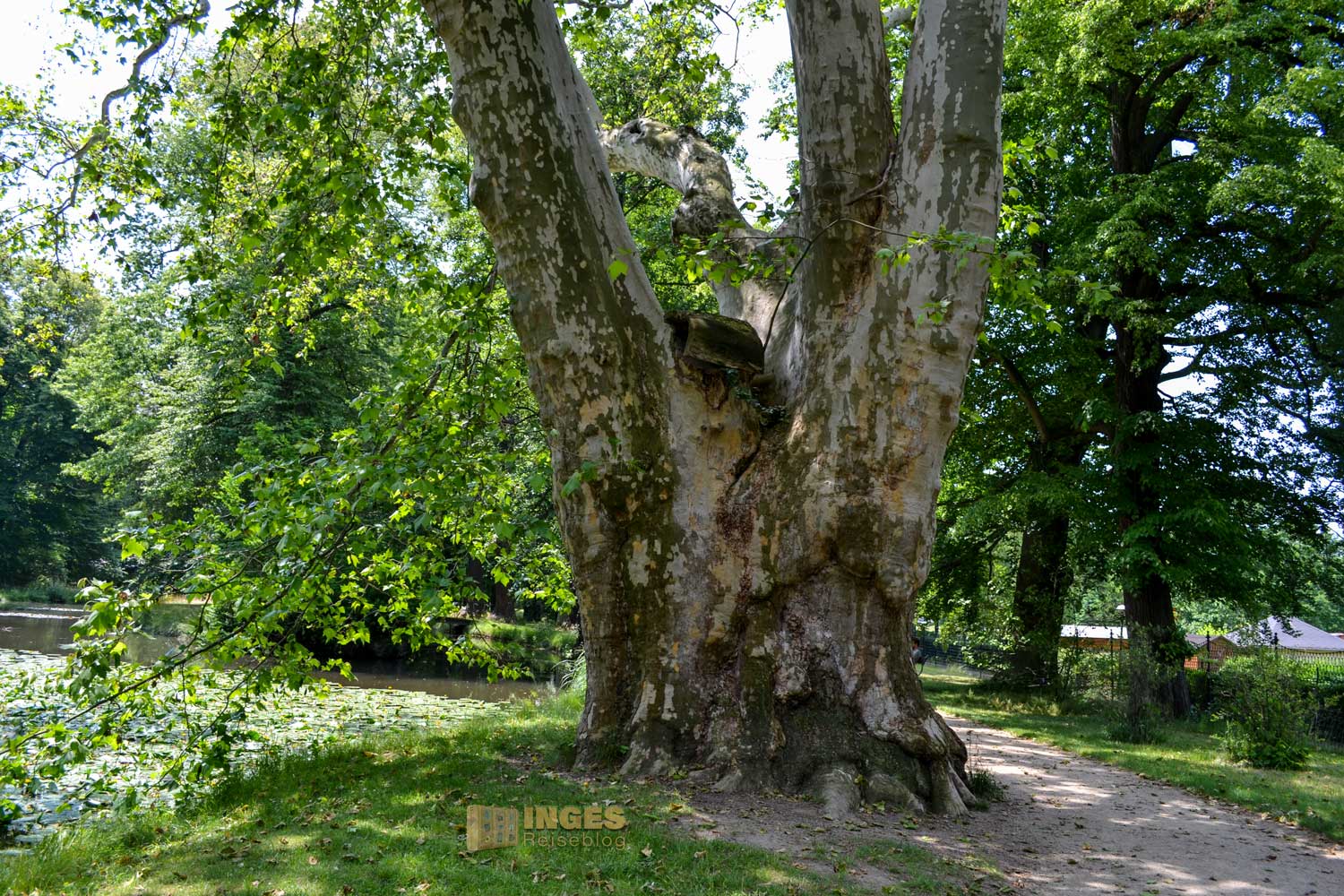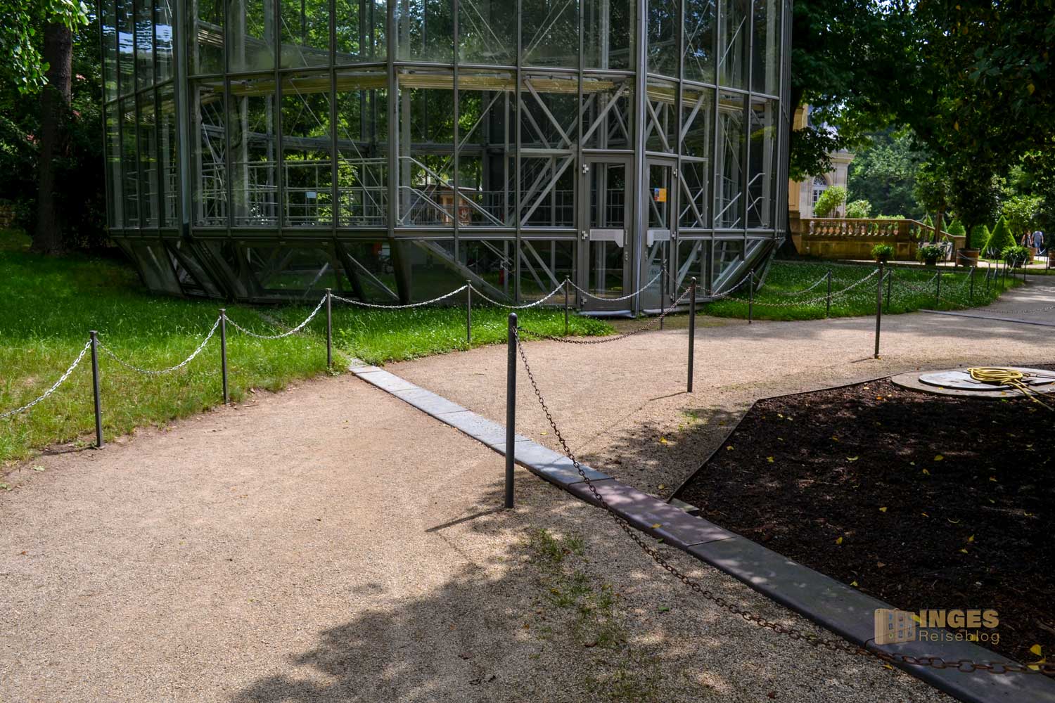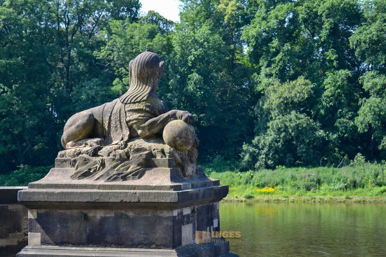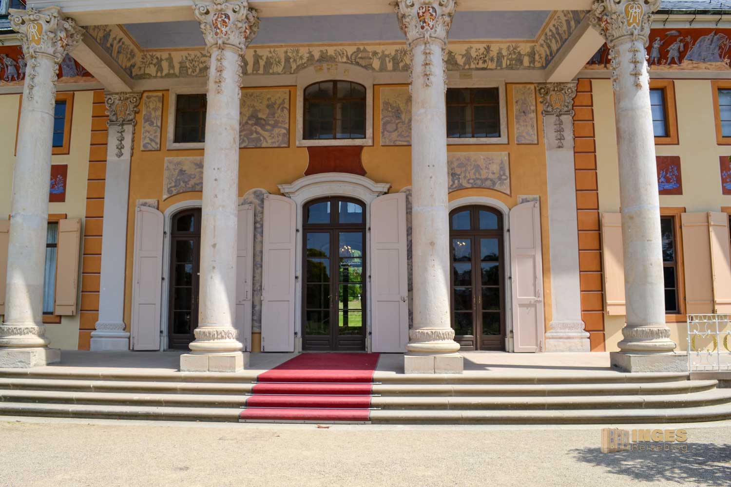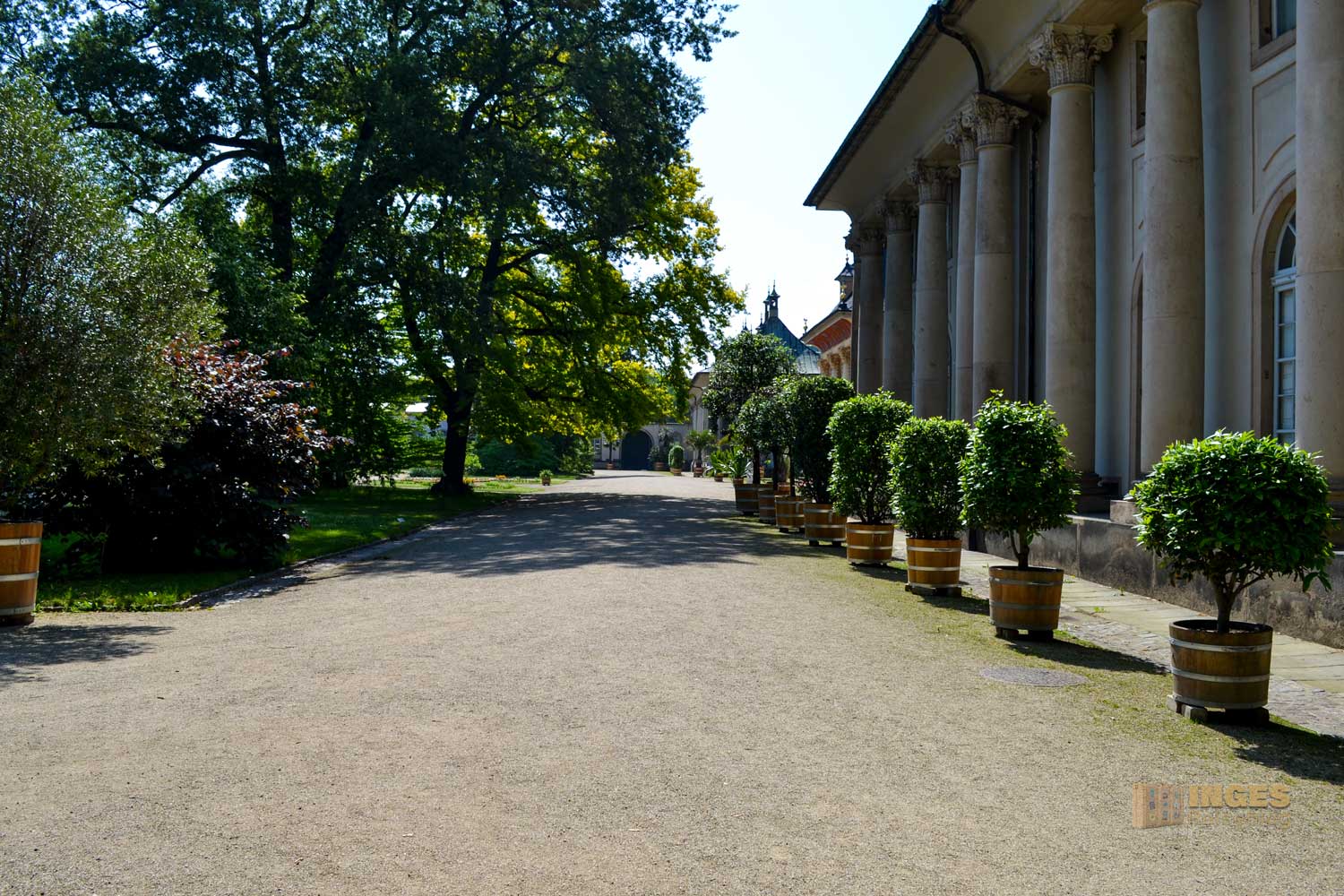 der für uns durch den Gang der langen Baumallee beginnt. Dieser gesamte Teil ist kostenfrei, und auf dem Rückweg zum Parkplatz haben einige dort ihr Plätzchen für ein Picknick gewählt. Auch der Weg direkt an der Elbe, vorbei am Wasserpalais ist im kostenfreien Bereich. Aber ganz ehrlich, nur ein Spaziergang dort an der Elbe entlang und nicht in den Schlossbereich, wäre jammerschade. Und der Eintrittspreis von 8,00 € ist wirklich sehr moderat. Montags ist aber geschlossen.