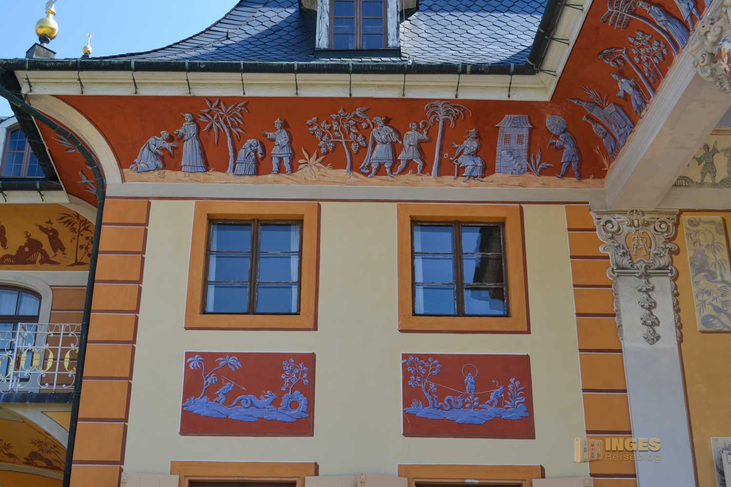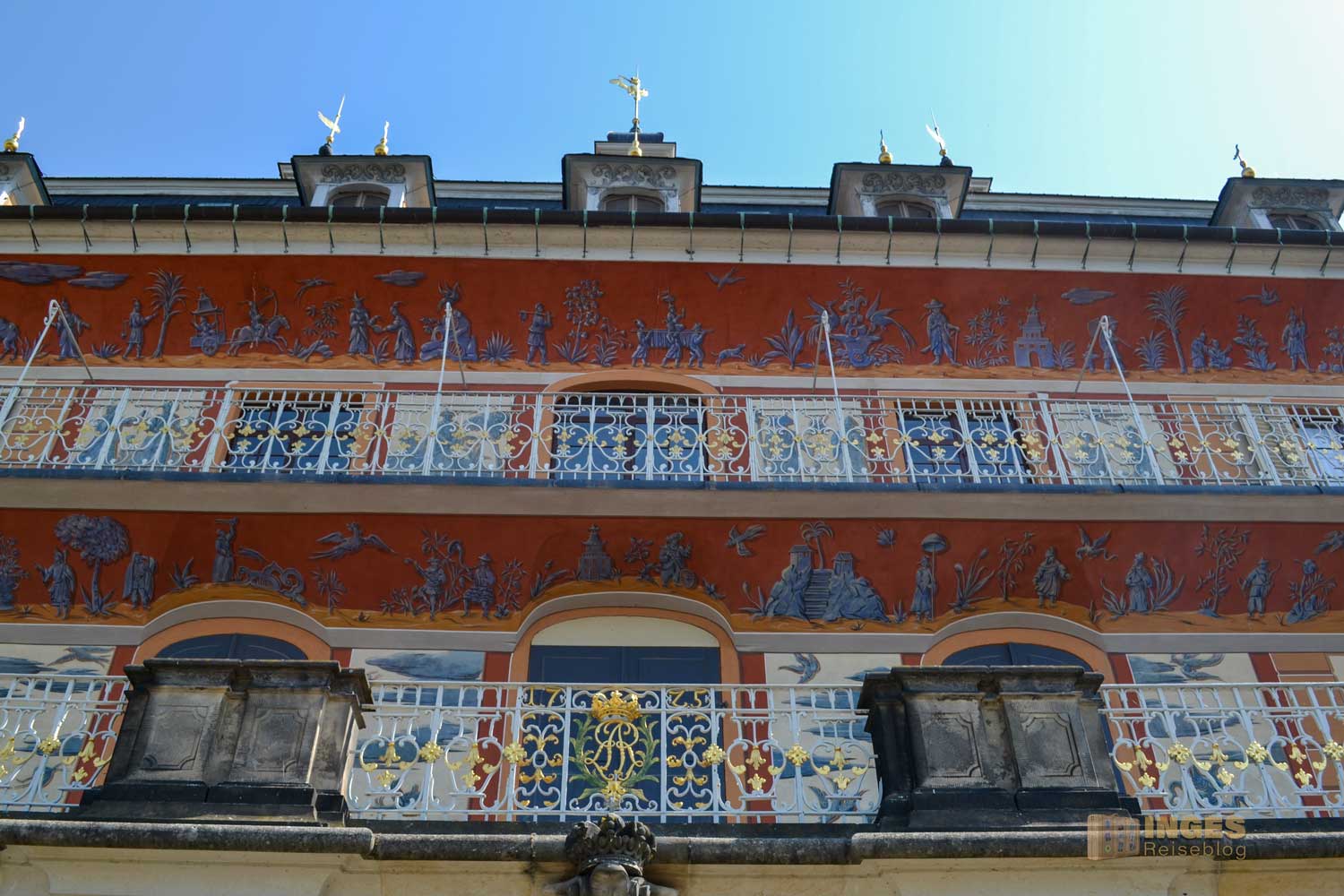 Als August der Starke dieses herrliche Reich mit Schloss Pillnitz fertiggestellt hatte, verlor er das Interesse an Pillnitz und wandte sich seinen anderen Schlössern Moritzburg und Großsedlitz zu. Pfff .... kann ich nicht verstehen. Ich hätte zwischen allen Schlössern gewechselt.