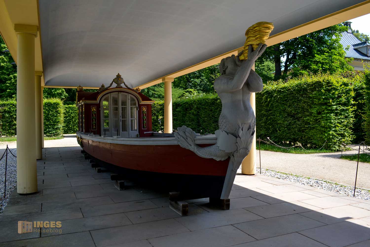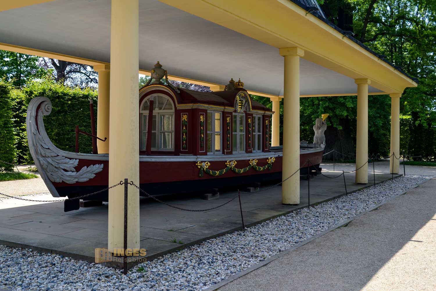 von Kurfürst Friedrich August III. von Sachsen nicht übersehen, die um 1800 gebaut wurde. Solche Gondeln dienten als Fortbewegungsmittel auf der Elbe zwischen der Residenz in Dresden und der Residenz auf Schloss Pillnitz. Die ausgestellte Gondel ist nach dem historischen Vorbild nachgeschaffen.