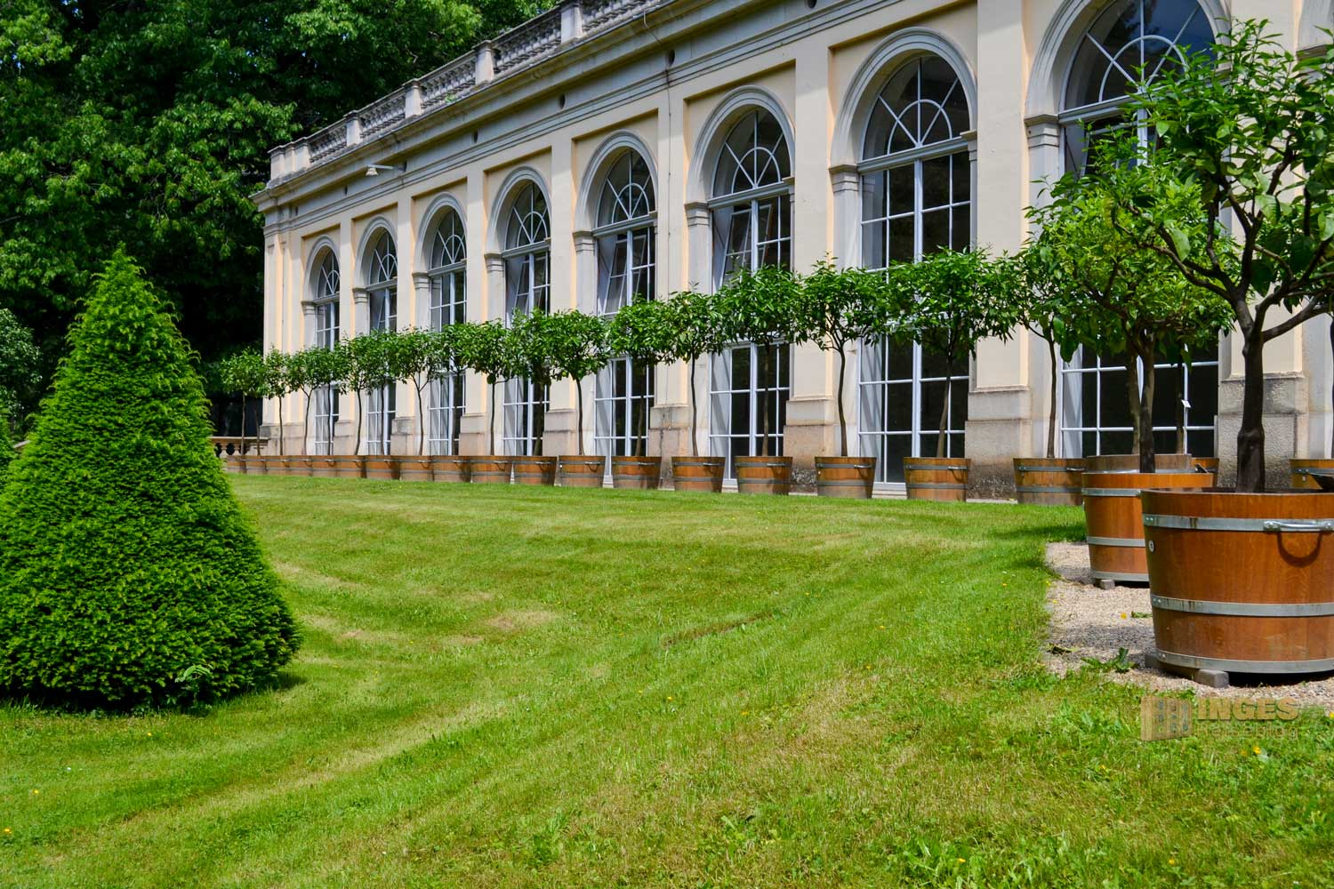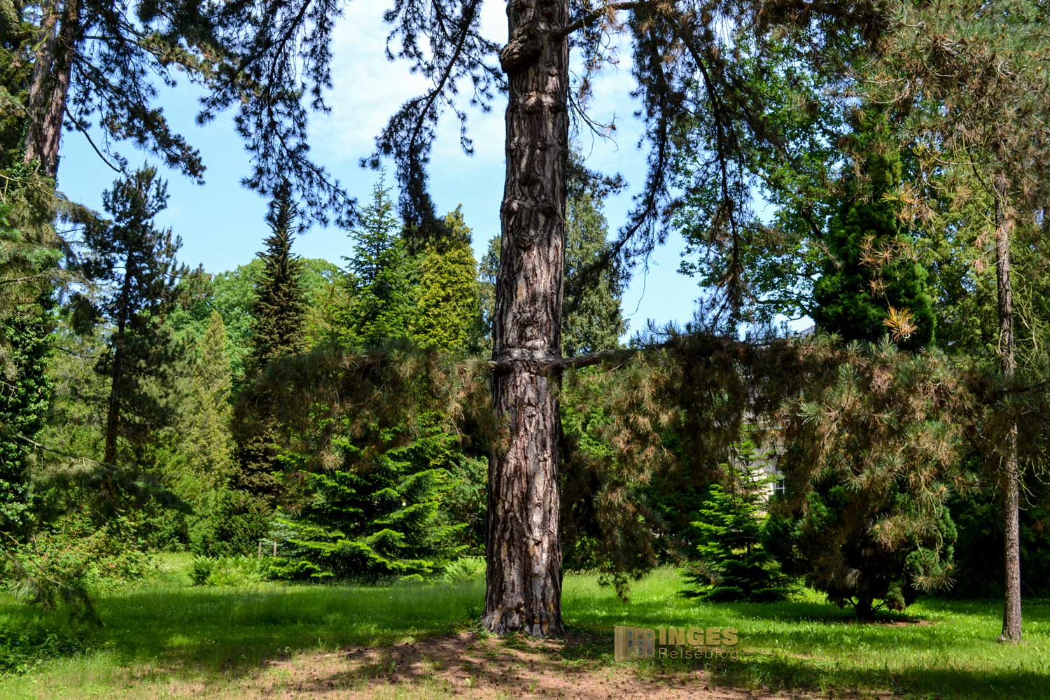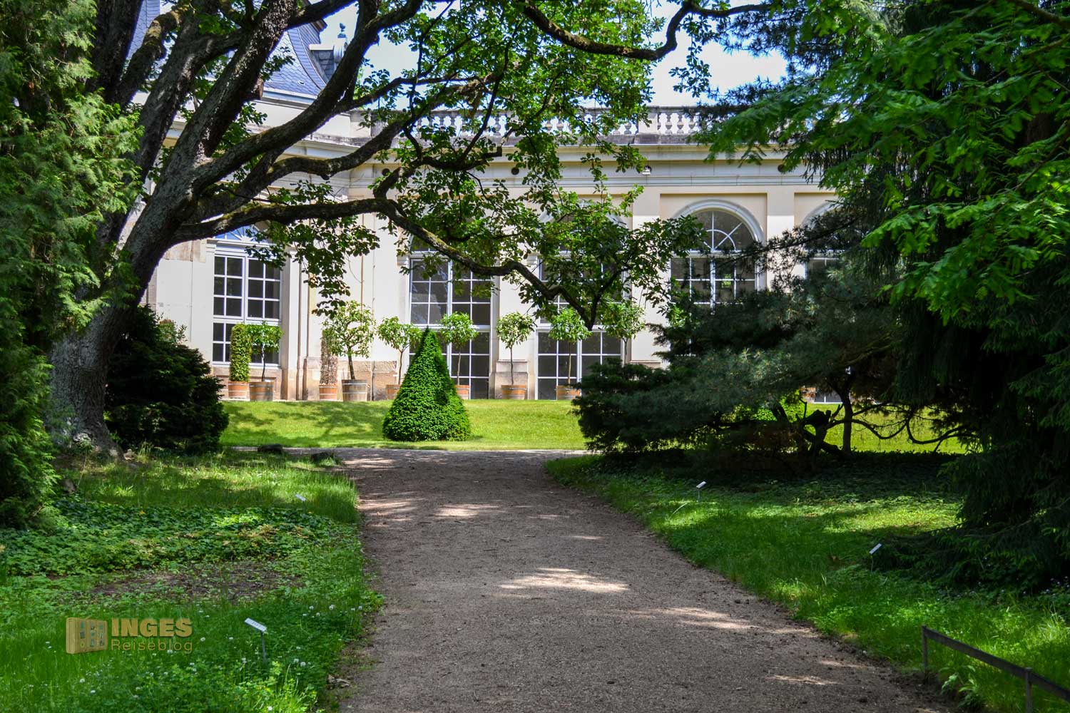 Durch den Koniferenhain zur Orangerie im Park von Schloss Pillnitz