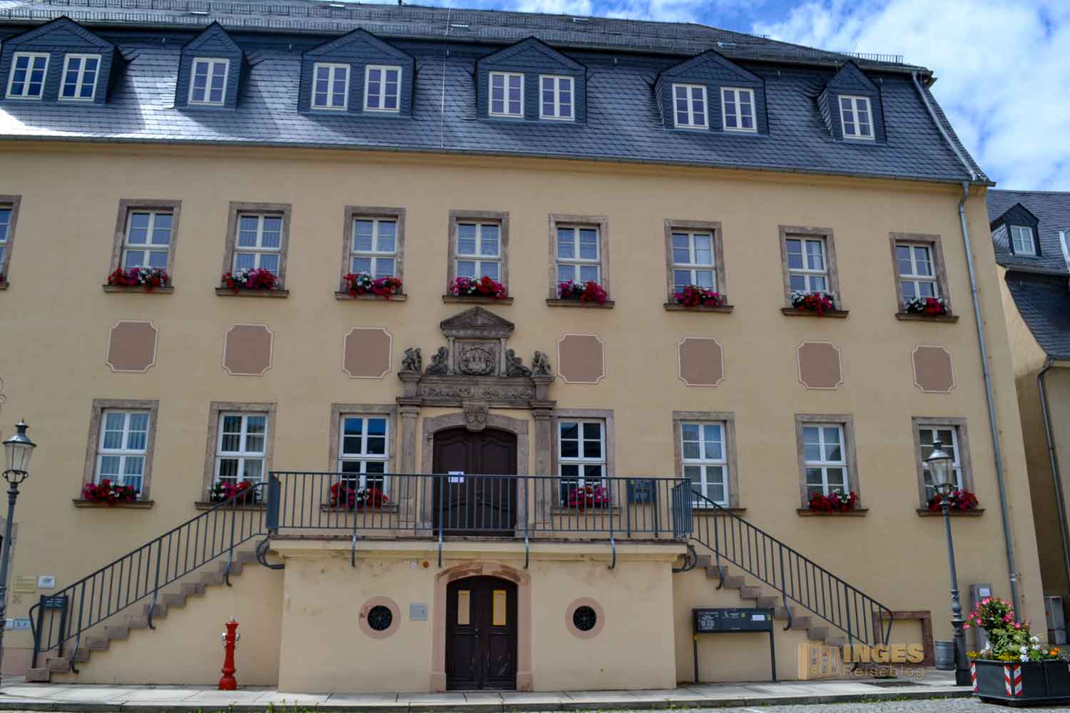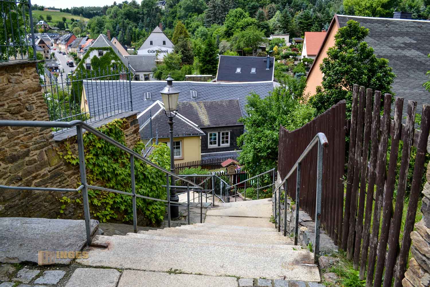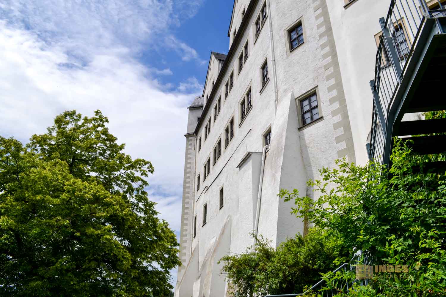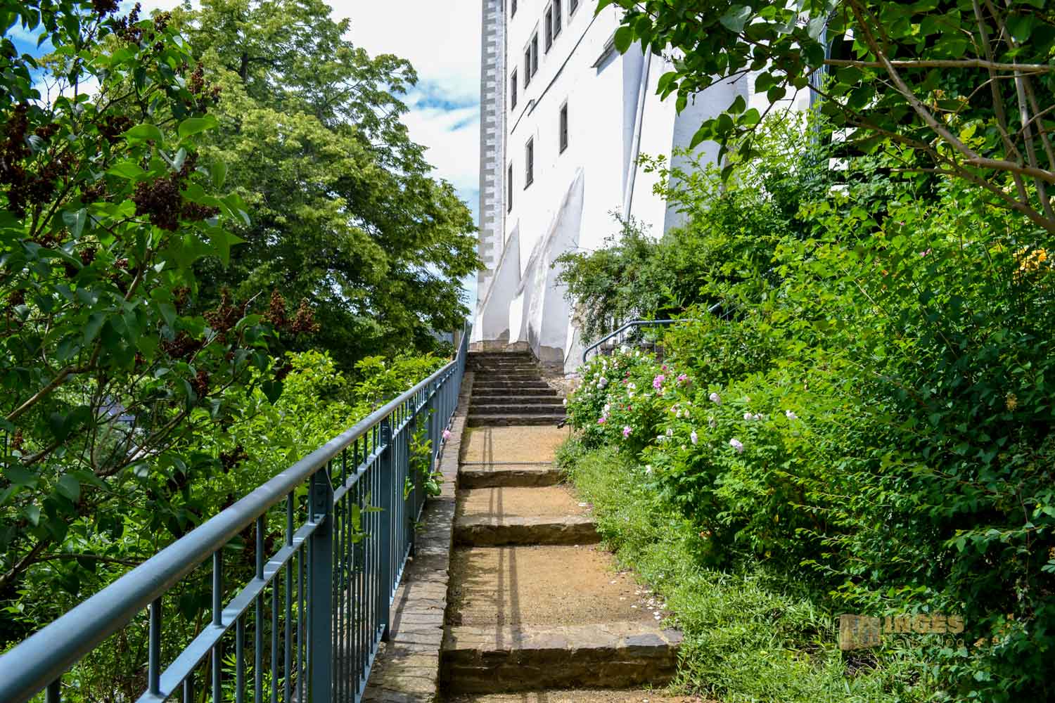 führte uns über Treppen nach oben. Sportprogramm für diesen Tag ✅😂 Es war schön, so inmitten von einem verwilderten bis geordneten Garten nach oben zu gehen, das Schloss immer im Blick. Das hat schon noch so ein anderes Feeling wie direkt zum Parkplatz am Schloss zu fahren, und fast aus dem Auto ins Schloss zu fallen. Das geht nämlich auch, es gibt beim Schloss oder in der angrenzenden Stadt einige direkte Parkmöglichkeiten. Dieses Erlebnis des Aufstiegs hatten wir ja bereits beim Schloss Albrechtsburg in Meißen und auf Schloss Augustusburg.