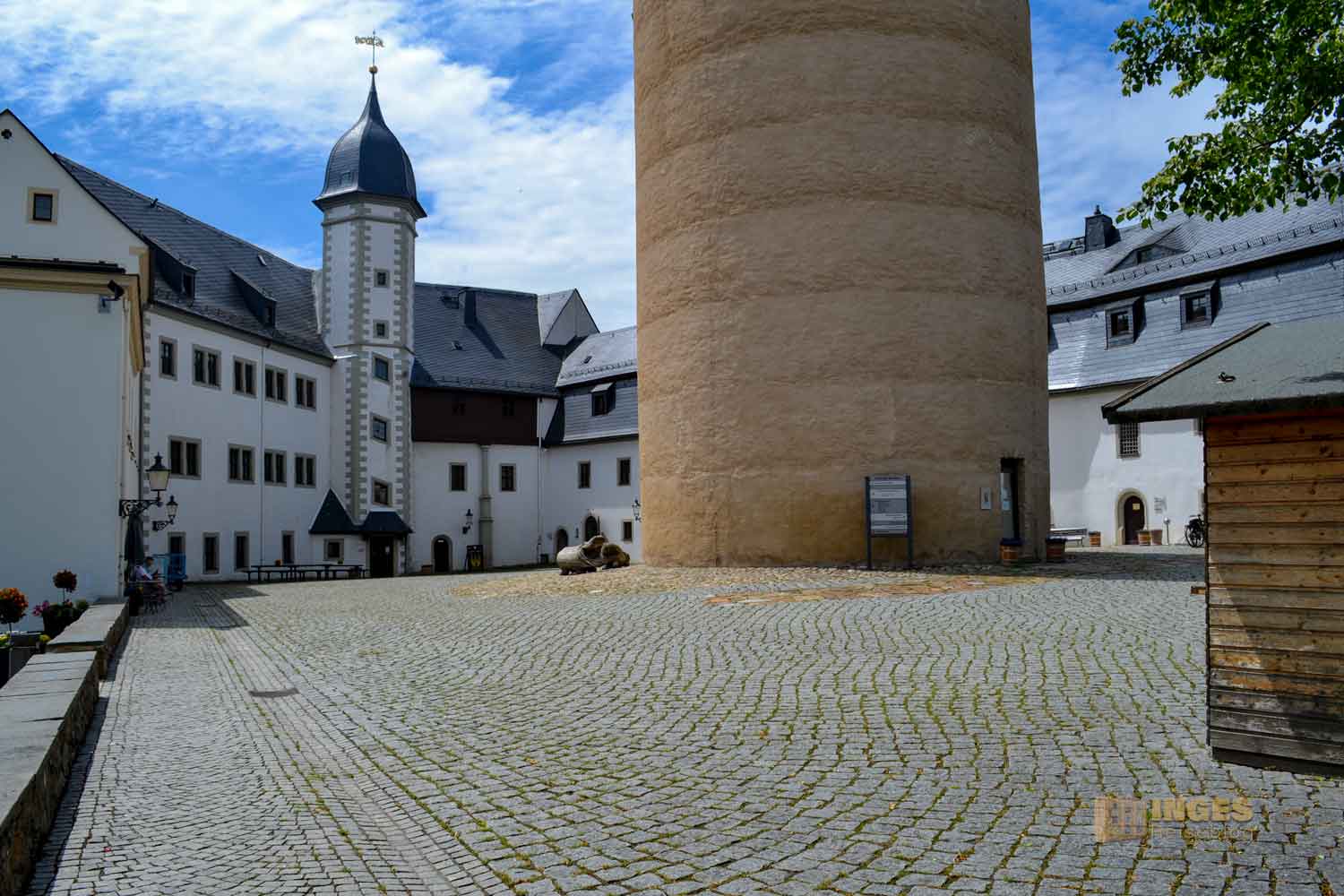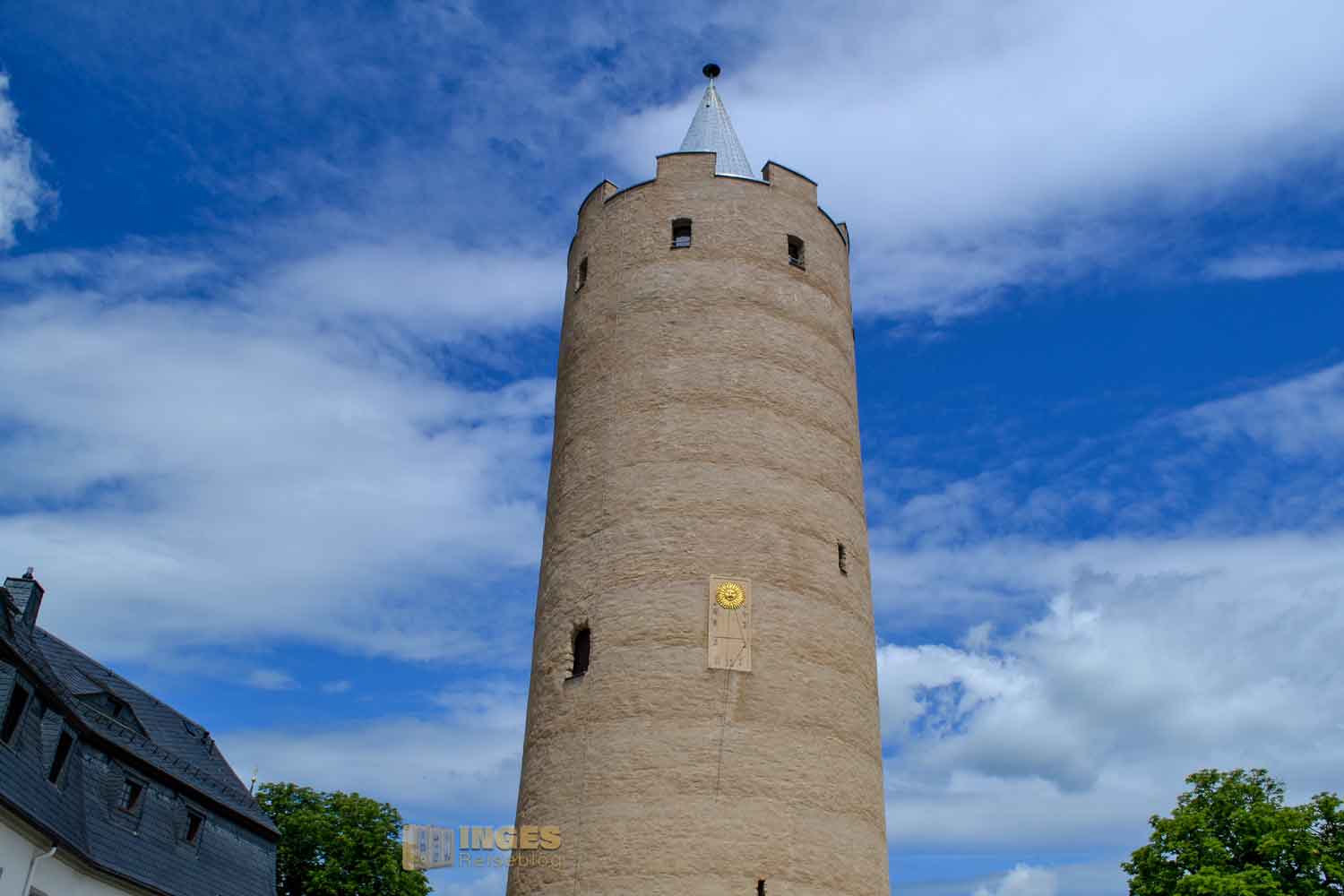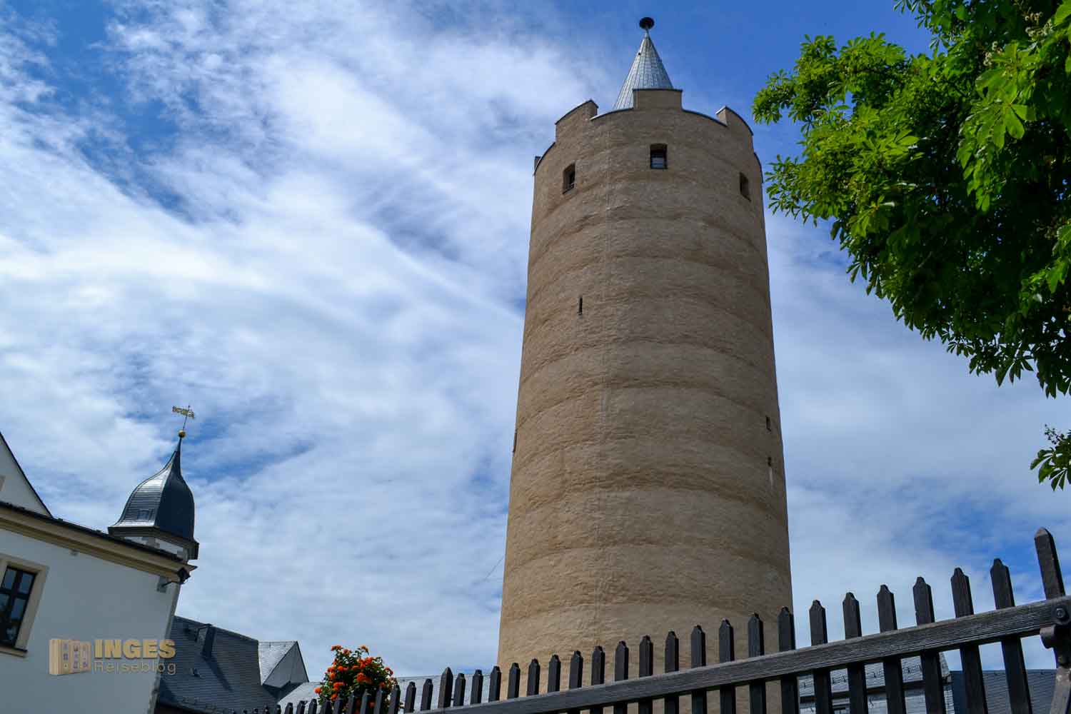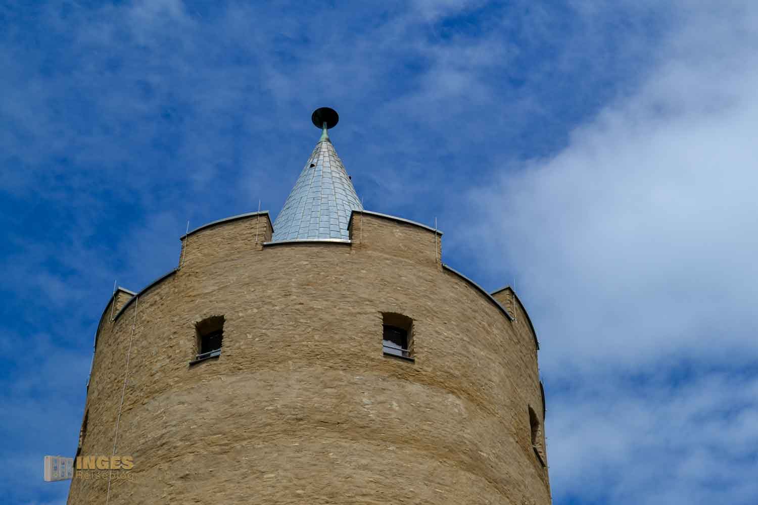 So wird dieser 30 Meter hohe Bergfried im Volksmund genannt und sofort fielen mir zwei weitere Objekte ein, über die auch so ein dicker Heinrich wacht - Schloss Neuenburg und Burg Haynsberg. Als massiver Teil einer mittelalterlichen Wehranlage schützte er das dahinterliegende Burggebäude.