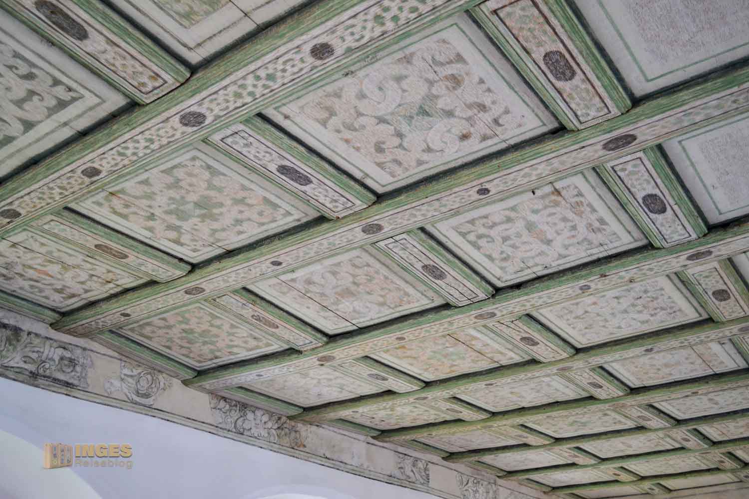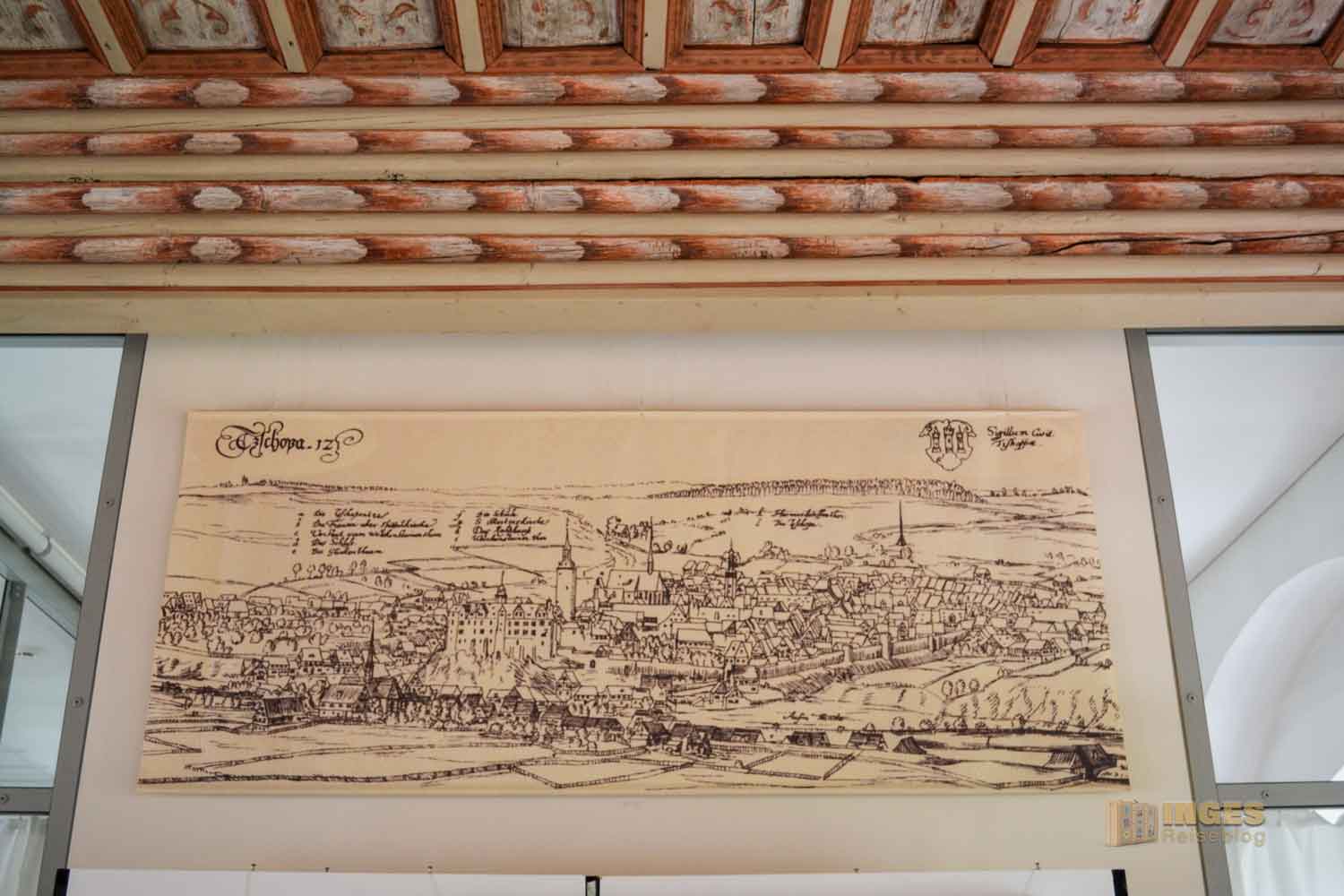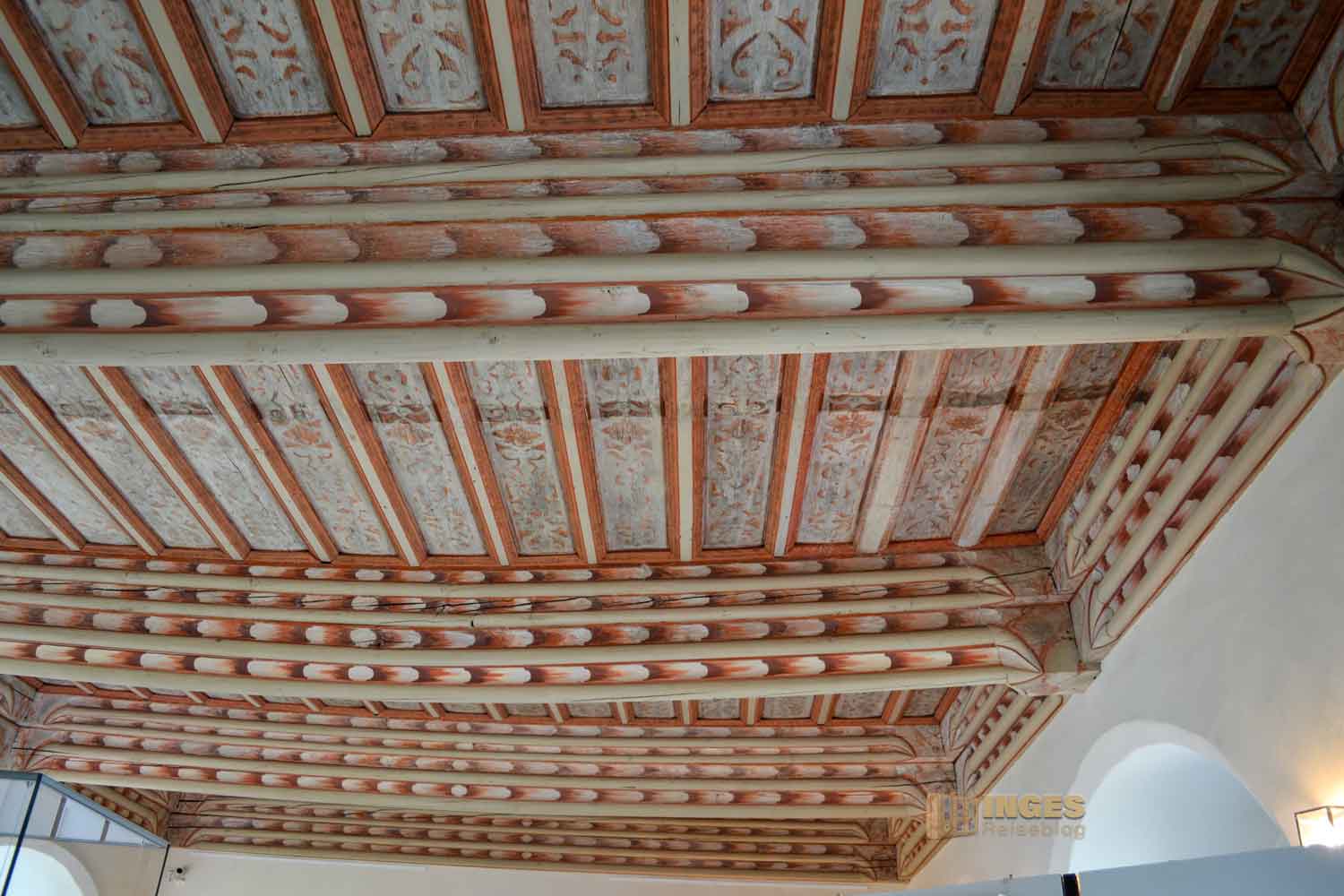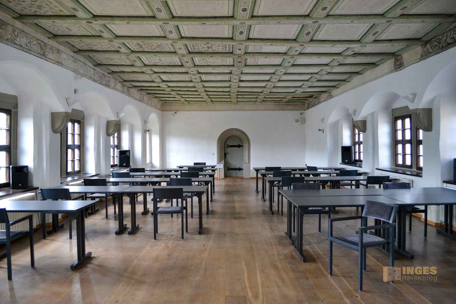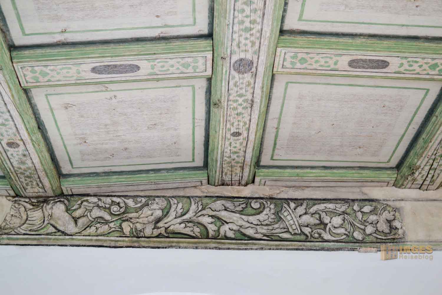 Wer aber eine farbige Decke erwartet - Fehlanzeige. Bei Umbauarbeiten wurden Holzdecken eingezogen. Aber deshalb behält der Raum trotzdem seinen Namen und diente vom 16.-18. Jh. der hohen Herrschaften als Schlafgemach. Später war darin die Schreibstube für das Königliche Gericht untergebracht.