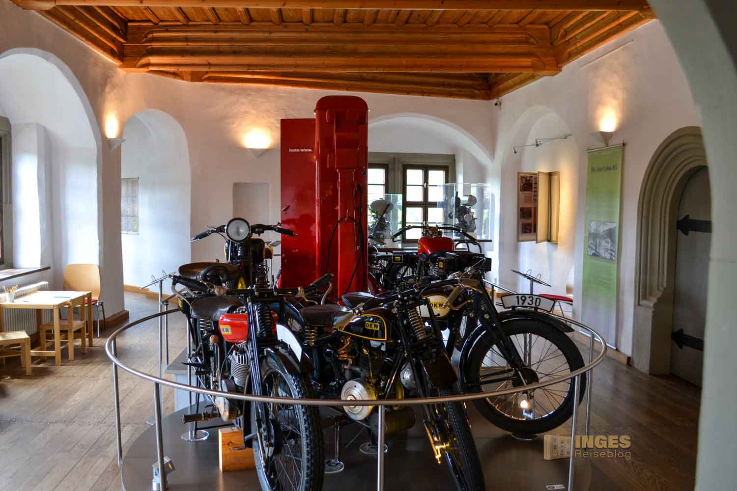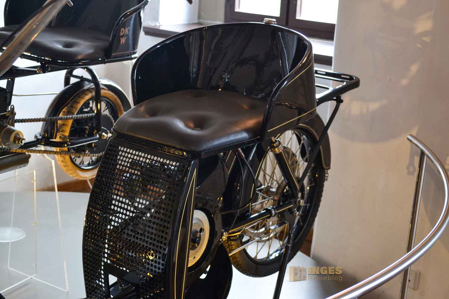 Kleiner als auf Schloss Augustusburg, aber sehr beeindruckend zeigt es die Gründung des DKW-Werkes Anfangs des 20. Jahrhunderts. "Das kleine Wunder" = DKW wurde zur größten Motorradfabrik der Welt. Aus acht Jahrzehnten lassen sich Motorräder und Teile einer Zschopauer DKW-Vertragswerkstatt bestaunen. Und auch für die Kleinsten ist hier gesorgt.