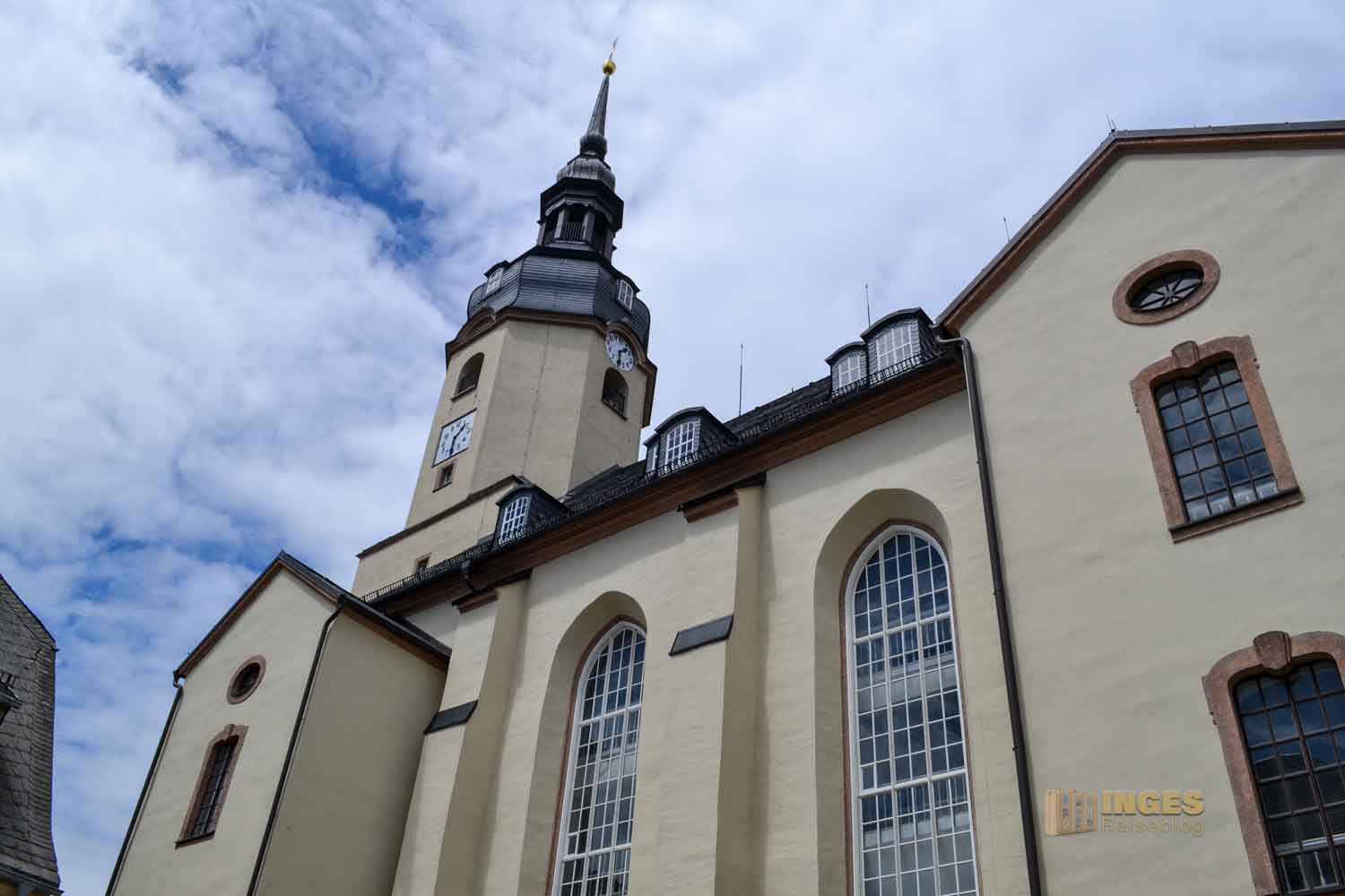 gleich nebenan werfen. Irgendwie schien es mir, als dass hier Sonntags 'die Gehwege hochgeklappt' werden. Es war NICHTS, aber wirklich überhaupt nichts los in der Stadt. Keine Ahnung, ob es zu Lasten von Corona ging oder es meistens so ruhig zugeht. Die Kirche blieb und auch verschlossen, und nach einem Blick auf das alte und neue Rathaus der Stadt gab es am Neumarkt noch ein Eis, bevor es dann weiter zur Talsperre Saidenbach ging.