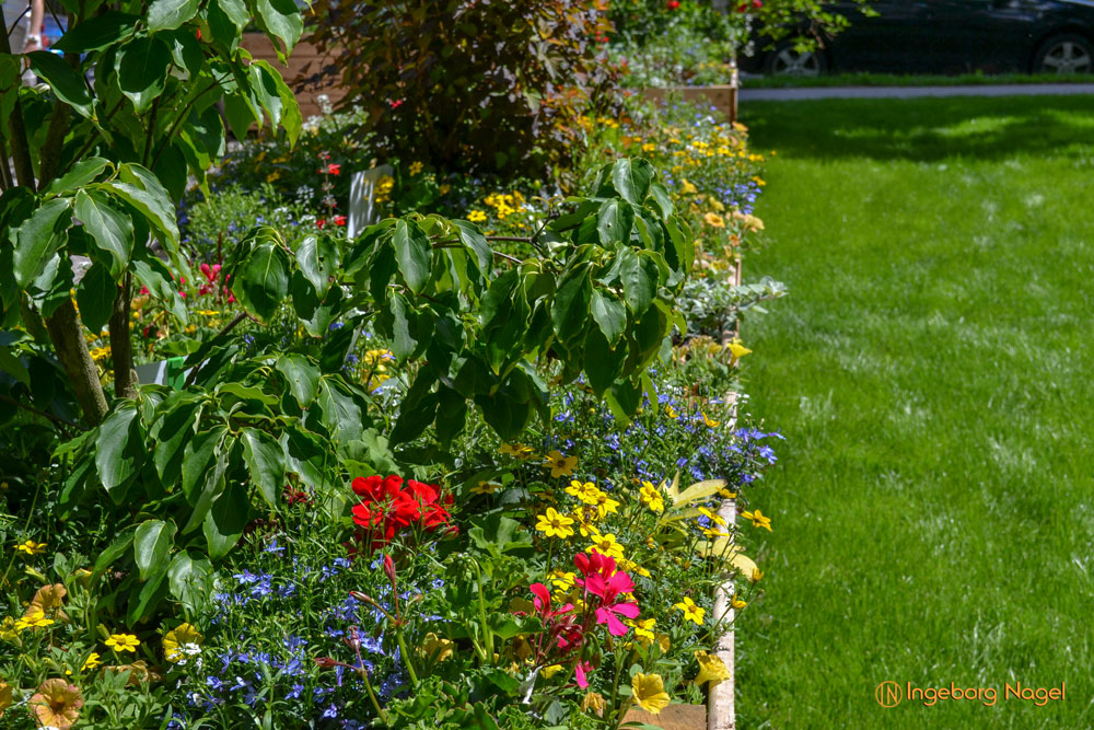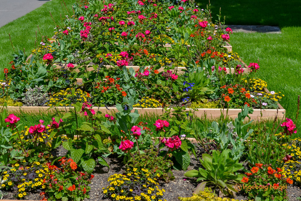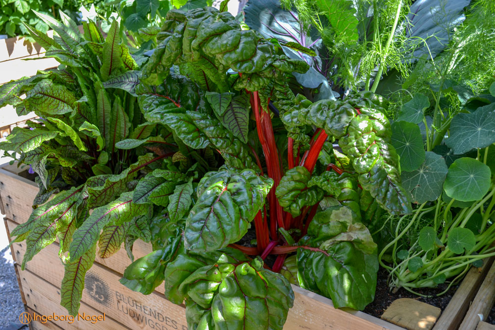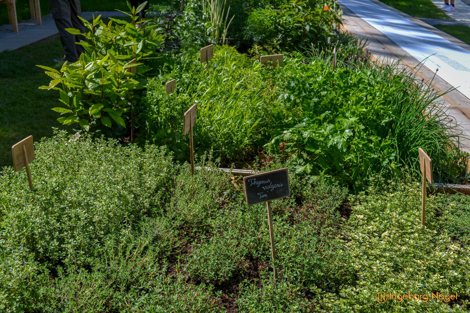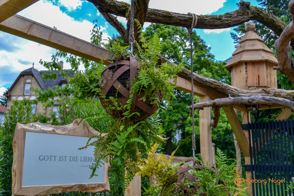 Der Weg geht weiter den Besinnungspfad über den alten Friedhof zu den Holzkistengärten mit Gemüse, Kräutern, Früchten und Blumen.