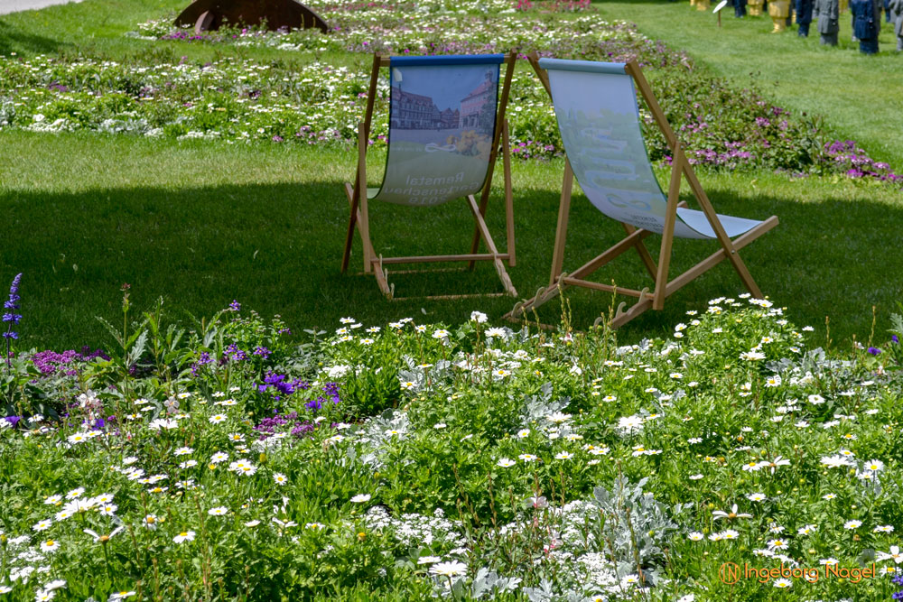 Viel Zeit haben wir im Schlosspark zugebracht. Wunderschön gepflanzt und gestaltet und mit dem absoluten Hingucker im Burggraben - 500 mal Gottlieb Daimler als 95 cm große Figur. Das Schorndorfer Schloss ließ Herzog Ulrich 1538 erbauen und es zählte im 16. Jahrhundert als stärkste Stadtfestung im gesamten Herzogtum. Heute ist im Schloss das Amtsgericht untergebracht und über die Gartenschauzeit sind im Schlosskeller die wunderschönen Blumenschauen zu sehen.