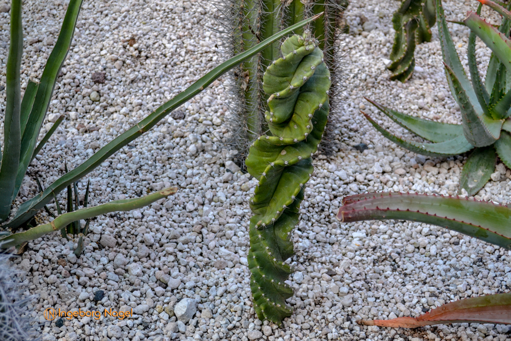 Über den Kakteengärten kann man einen Blick auf den Fünfknopfturm erhaschen. Der Turm war ein Teil der äußeren Stadtbefestigung im nordwestlichen Teil der Stadt und ist neben dem Königsturm einer der sechs Stadtmauertürme. Bis 2003 war der Turm bewohnt und bis ins 20. Jahrhundert diente er als Feuerwachturm.