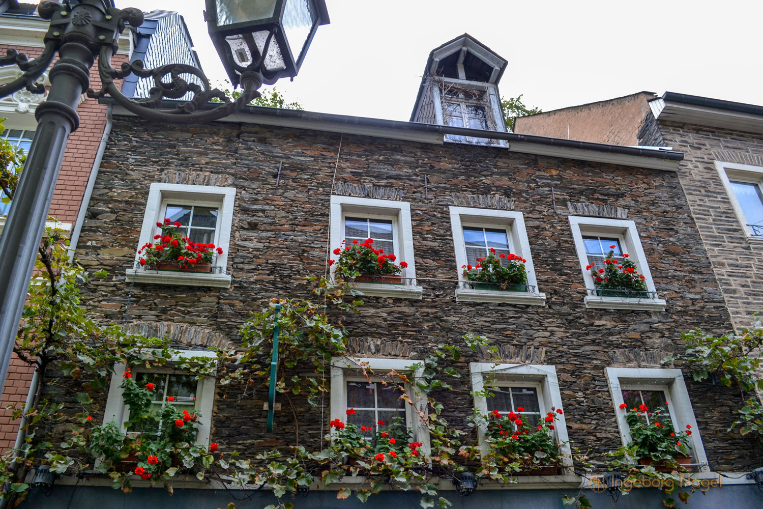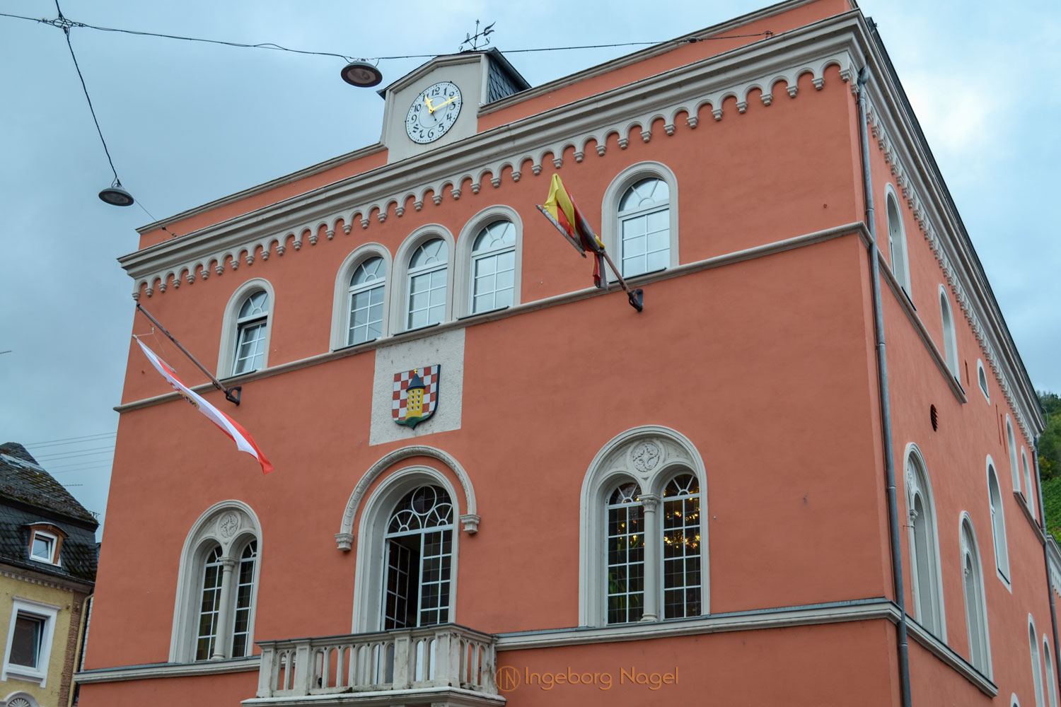 Bruno Möhring entdeckte in Traben-Trarbach die Liebe zur Mosel, kam mit namhaften Weinhändlern zusammen und so folgten weitere Aufträge mit einzigartigen Bauwerken, die bis heute noch erhalten sind. Wir gingen aber nicht auf Entdeckungstour dieser Jugendstil-Villen, sondern suchten die kleinen Fleckchen, die vielleicht nicht jeder Tourist in der Stadt gleich entdeckt. So ging unser Weg durch die sehr belebte Fußgängerzone, an der katholischen Kirche vorbei zum Rathaus ...