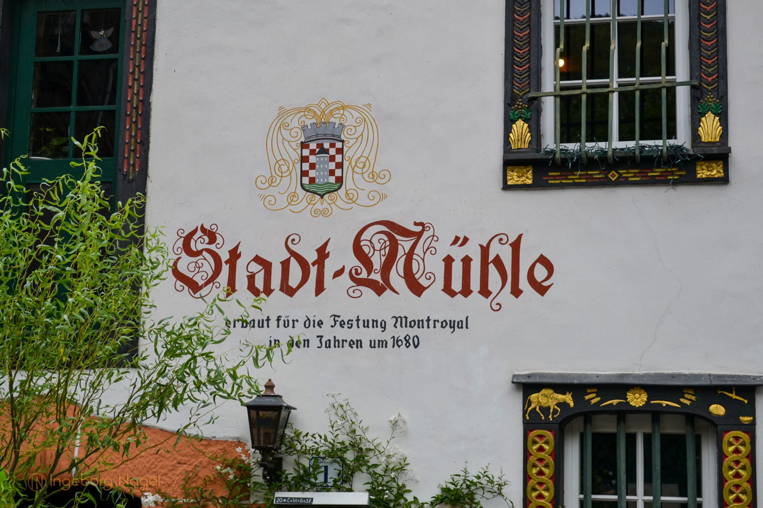 Raffiniert wird das Wasser der Hausdächer in den angrenzenden kleinen Bach geleitet. Angesichts des 'Rummels' in der Fußgängerzone - wir waren hier allein unterwegs.