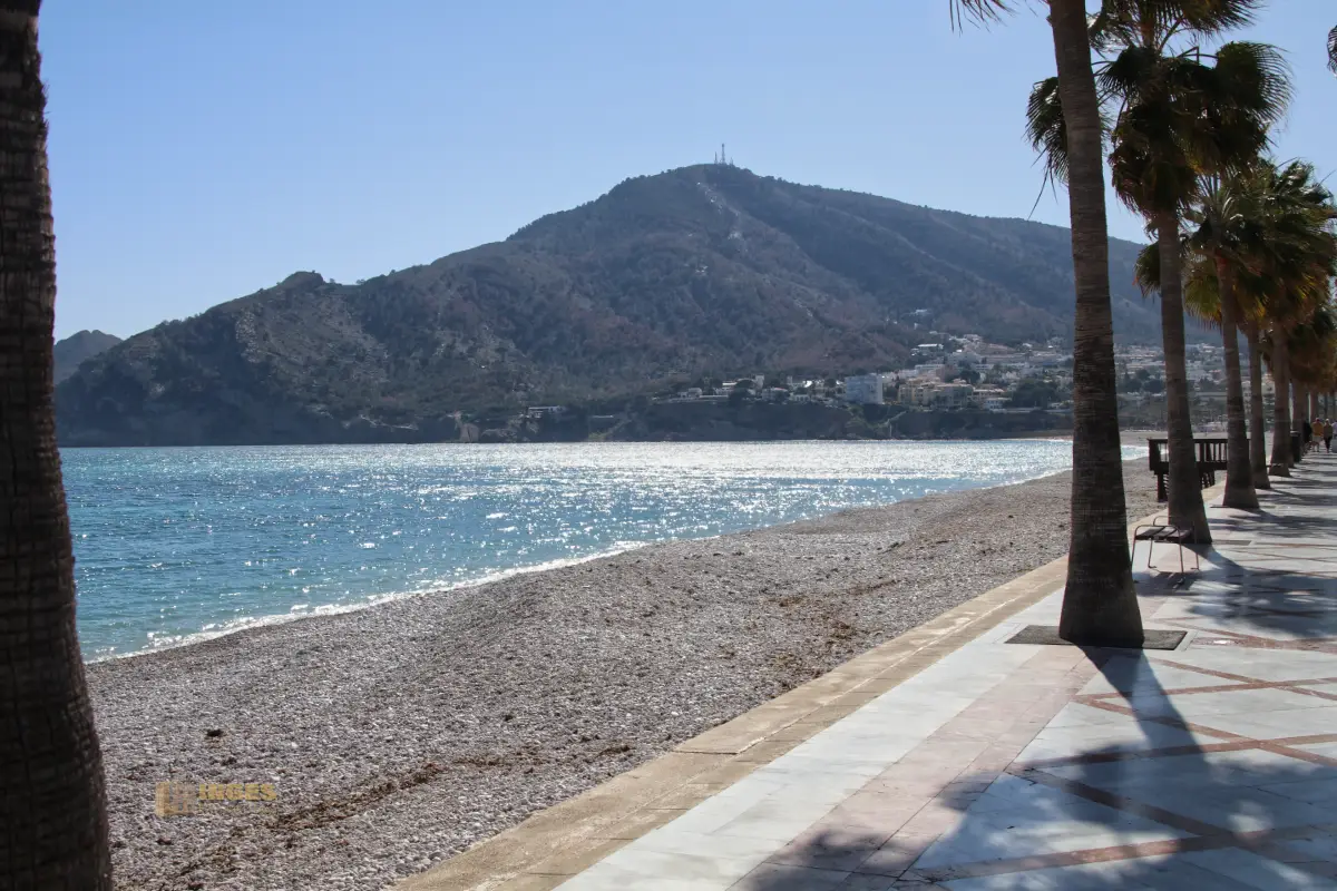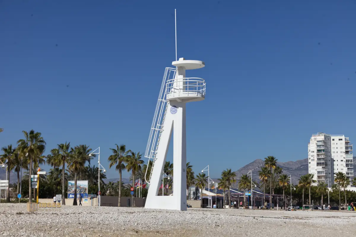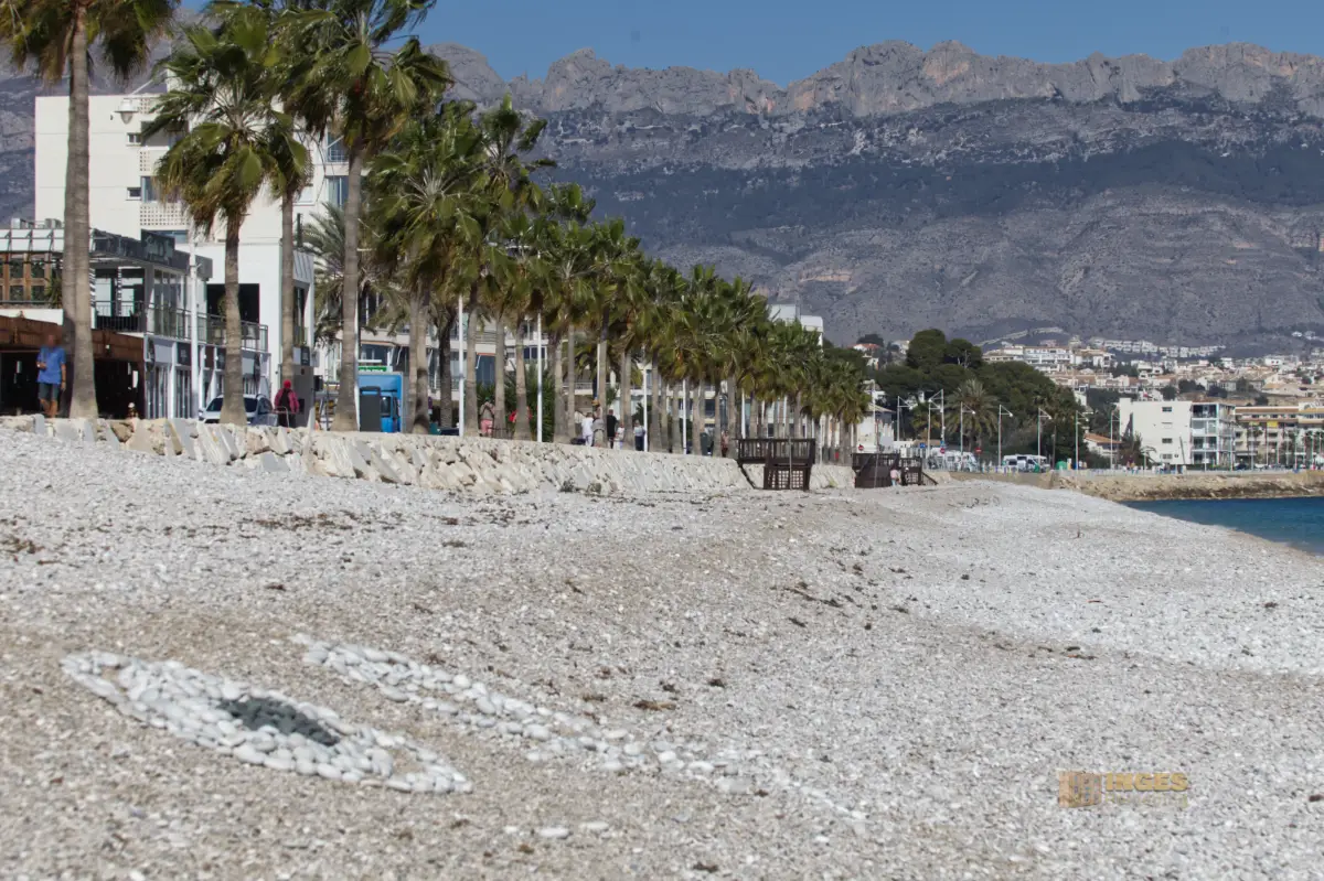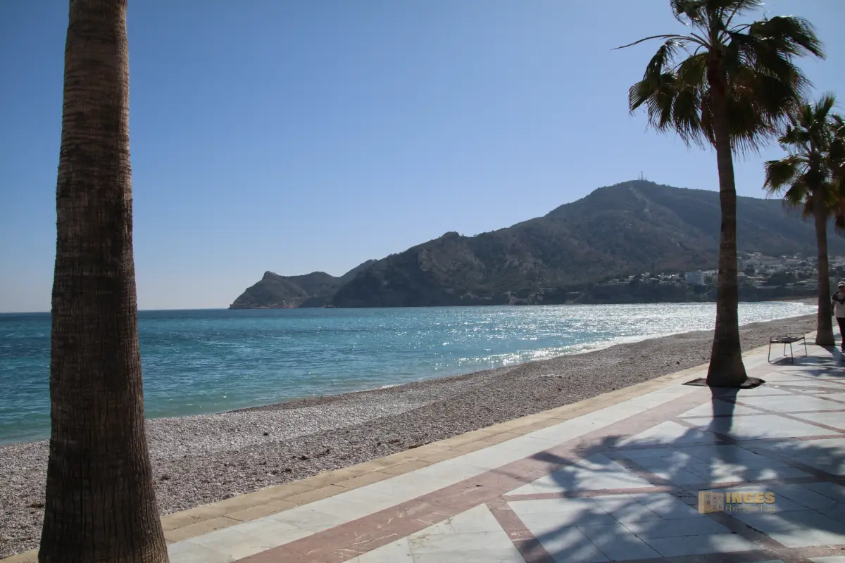 bis nach L'Albir entlang. Eine kleine Straße bringt Rad- oder Autofahrer an ihr Ziel. Links ein mit Palmen gesäumter Fußweg, rechts davon liegen Restaurants und Cafés mit direktem Blick aufs Meer.