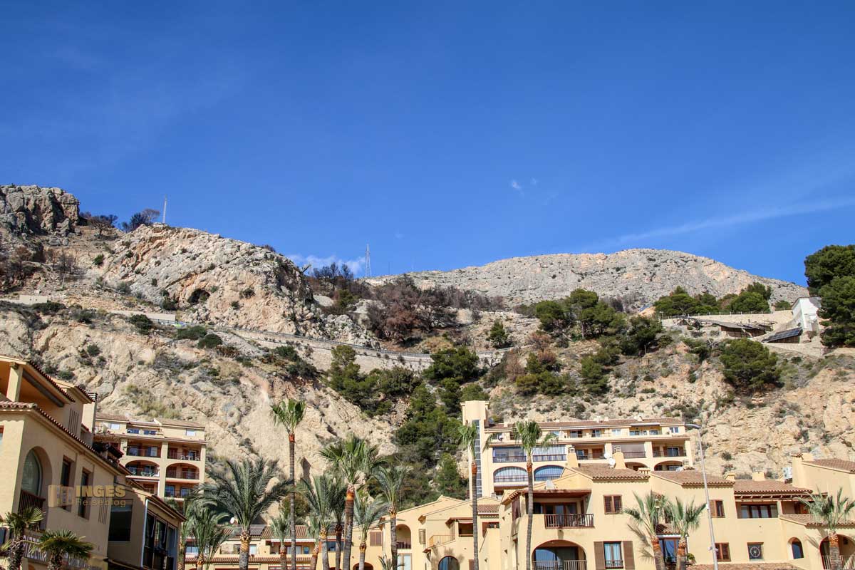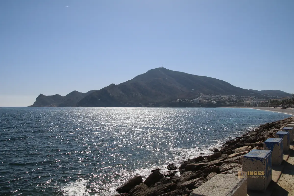 Der Blick zur Sierra Helada und dem Leuchtturm von L'Albir