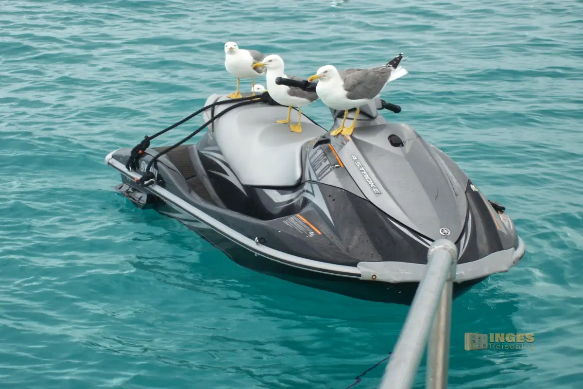 Natürlich muss auch hier eine Kaffeepause sein - mit viel Zeit für Blicke. Und was sehen die? Ganz viele Jetski, die ihren Benutzern Spaß bereiten.