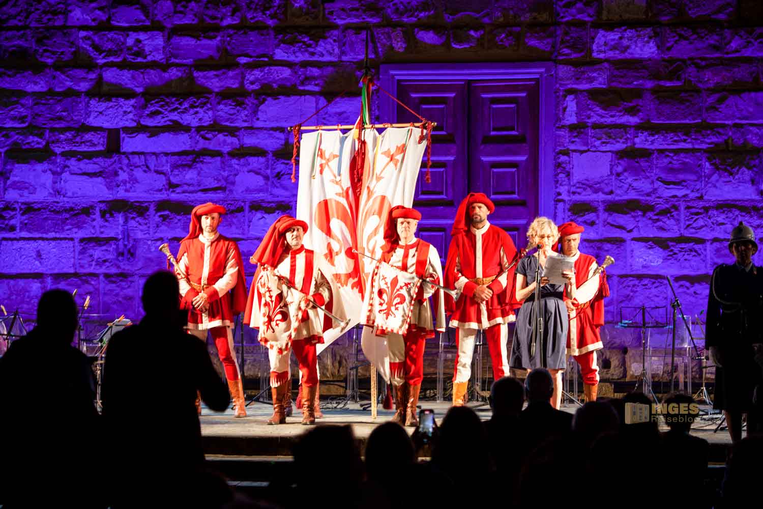 Obwohl man sonst die Lebensfreude in Florenz an allen Ecken und Enden spürt, schien es mir doch, dass ich diese Veranstaltung nicht in dieser Kategorie einordnen kann. Dafür erschien mir das ganze drum herum zu ernst und doch sehr offiziell. Einige Wortfetzen aus der italienischen Rede haben wir verstanden, aber so sehr ich im Internet gesucht habe, Licht ins Dunkel brachte mir erst Lucia, unsere Vermieterin, die mir den Anlass dieses Konzerts erklärte: