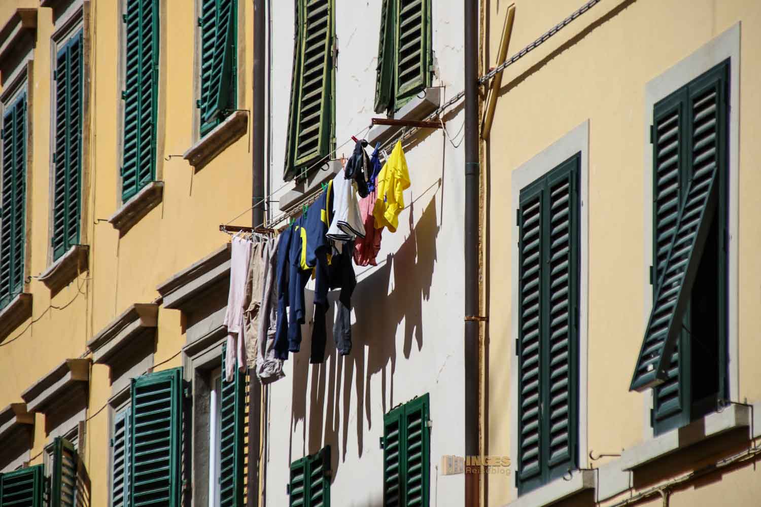 Wie in südlichen Ländern so üblich, flattert auch mitten in der Stadt die Wäsche am Fenster. Man sollte sie tunlichst gut festmachen, der Weg nach unten ist weit 🙂