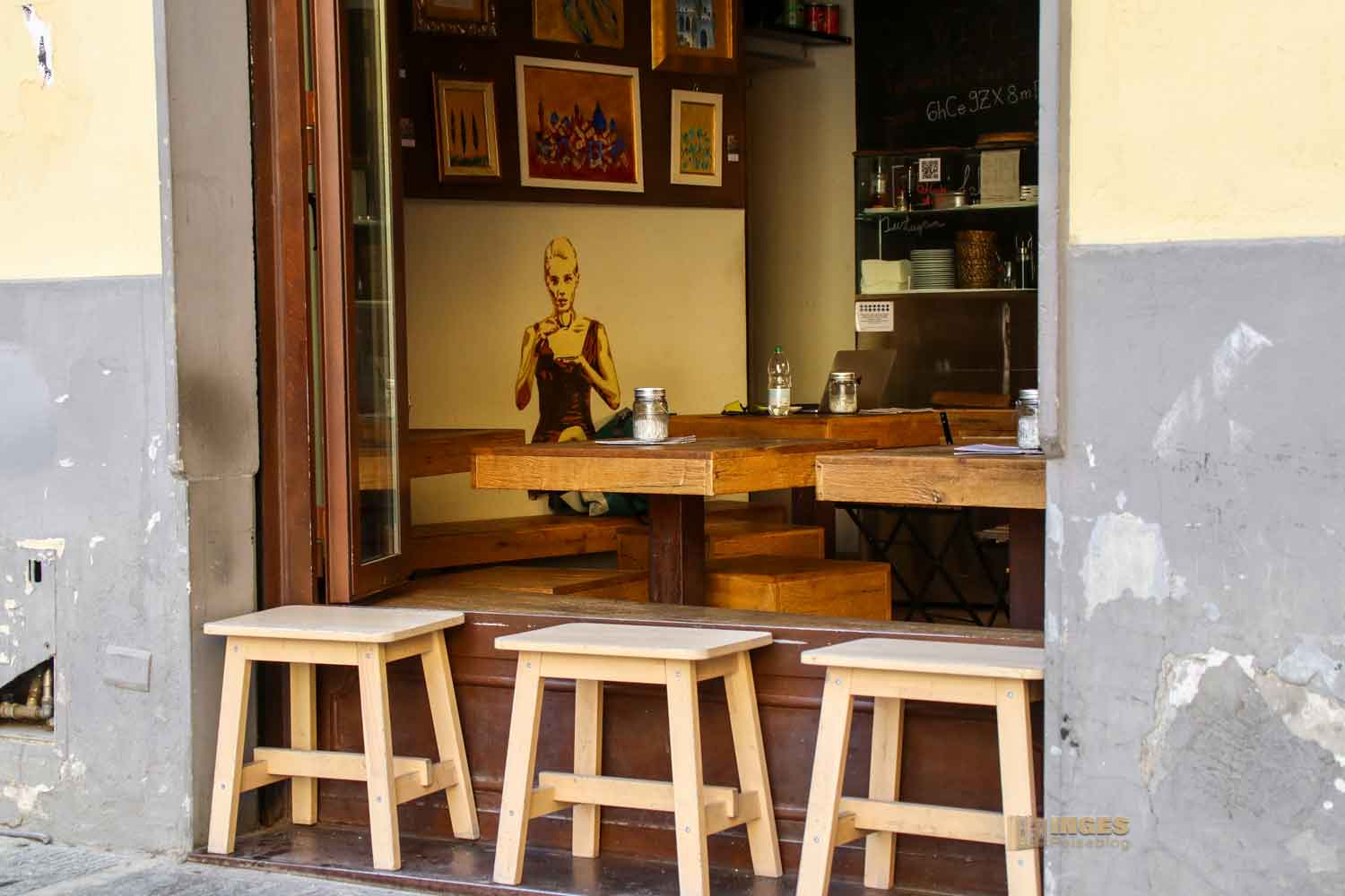 Da kann man für einen Minikuchen schonmal bis zu 20 € über den Tresen schieben. Von wegen aber Durchmesser von 26 cm 😀 😀 An unserem letzten Tag in Florenz kam der Wunsch nach einem Kuchen aber trotz diesem Wissen doch sehr extrem bei mir hoch. Ein schnuggeliges Café war schnell gefunden, gleich um die Ecke der weltbekannten Ponte Vecchio. Oh Inge 🙈 die Hitze muss dir schon heftig das Hirn trockengelegt haben - dieser Standort UND Kuchen! Mein Mann hat nur gegrinst. Mir ist es mit Blick auf die Karte dann aber doch etwas vergangen - 8 € für ein kleines Erdbeertörtchen 🙈 Ihr könnt euch vorstellen, ich hab jeden Krümel genossen 😀