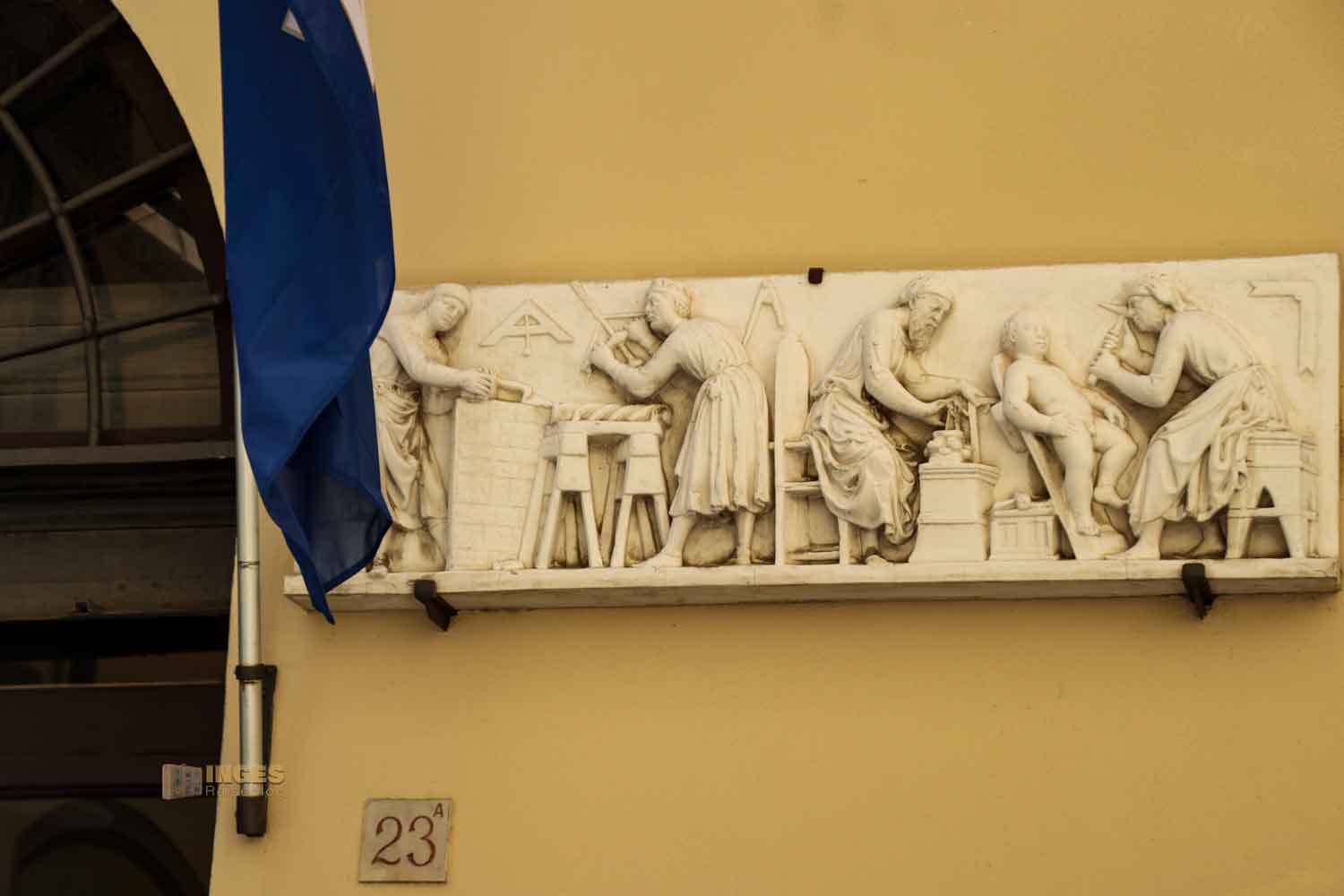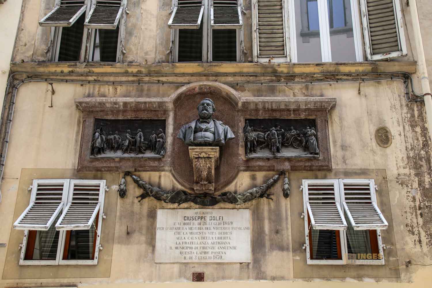 Eher zufällig habe ich das Flachrelief von Guiseppe Dolfi an einem Haus im Stadtteil San Lorenzo in Florenz entdeckt. Als nach der Ära der Medici die Toskana zu Habsburg-Lothringen kam, kämpfte Dolfi, ehemals ein Bäcker, 1859 dafür, dass die Toskana zum Königreich Sardinien kam. Nachdem er dieses Ziel mit einer Volksabstimmung erreicht hatte, setzte er sich in seinen letzten Lebensjahren für die Verbesserung der Lebensbedingungen der Armen in Florenz ein. 1869 verstarb Dolfi in Florenz.