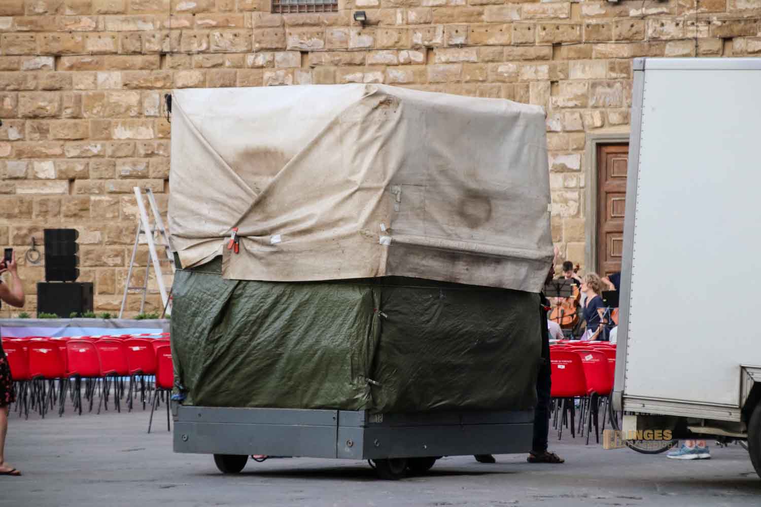 gibt es unzählig viele. Allein in unserem Wohnviertel drang am Wochenende Musik und Fröhlichkeit in unseren kleinen Garten. Als wir an einem Abend noch in der Stadt waren, und zufällig am Palazzo Vecchio vorbei kamen, sahen wir im Schatten des großen Palazzos unzählige Stuhlreihen. Im Inneren des Palazzos war ein Cello-Orchester noch fleißig am üben. Hmm ... "wir könnten doch?" Ihr kennt ja meinen Satz bestimmt schon aus vielen meiner Berichte. Und dieser Satz endet ja dann auch meistens mit "wir machen". Da ich aber weiß, dass die Veranstaltungen in Italien meist erst um 21 Uhr beginnen, blieb uns noch viel Zeit für ein ausgiebiges Abendessen in einem der vielen Restaurants auf der Piazza della Signoria vor dem Palazzo. Genuß pur, sag ich euch!