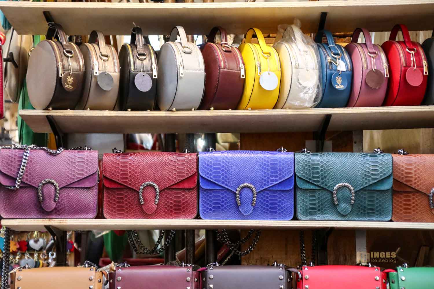 gezogen. Wäre ich ein Handtaschenfan, dann hätte ich mich an den vielen Marktständen in der Stadt wie ein kleines Kind freuen können. Doch auf Reisen habe ich ganz praktisch meine Gürteltasche um, daheim reichen mir ein oder zwei Handtaschen. Ihr merkt schon, ich schaue zwar gerne, aber Shopping mit mir macht keinen Spaß 😀 😀