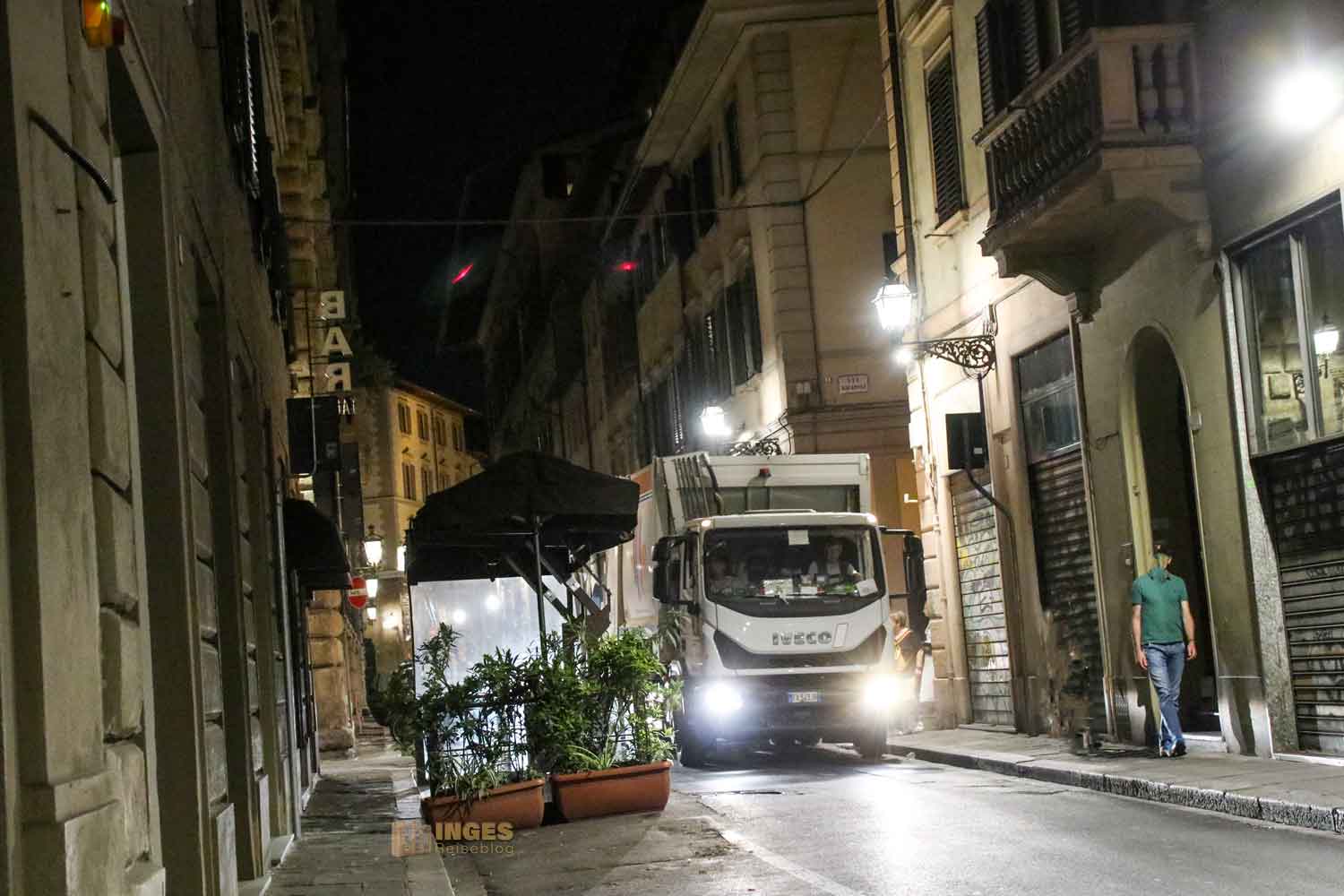 Irgendwann hieß es dann aber doch, raus aus der Stadt, damit uns noch ein Bus in unseren Stadtteil bringt. Ein besonderer Flair liegt am Abend über der Stadt ... auf der einen Seite kehrt in manchen Teilen Ruhe ein, die Stadtreinigung bahnt sich ihren Weg durch die Gässchen (übrigens haben wir Florenz als eine sehr saubere Stadt erlebt) - und in anderen Teilen steppt der Bär bis weit in die Nacht. Eine Stadt mit vielen Gesichtern.