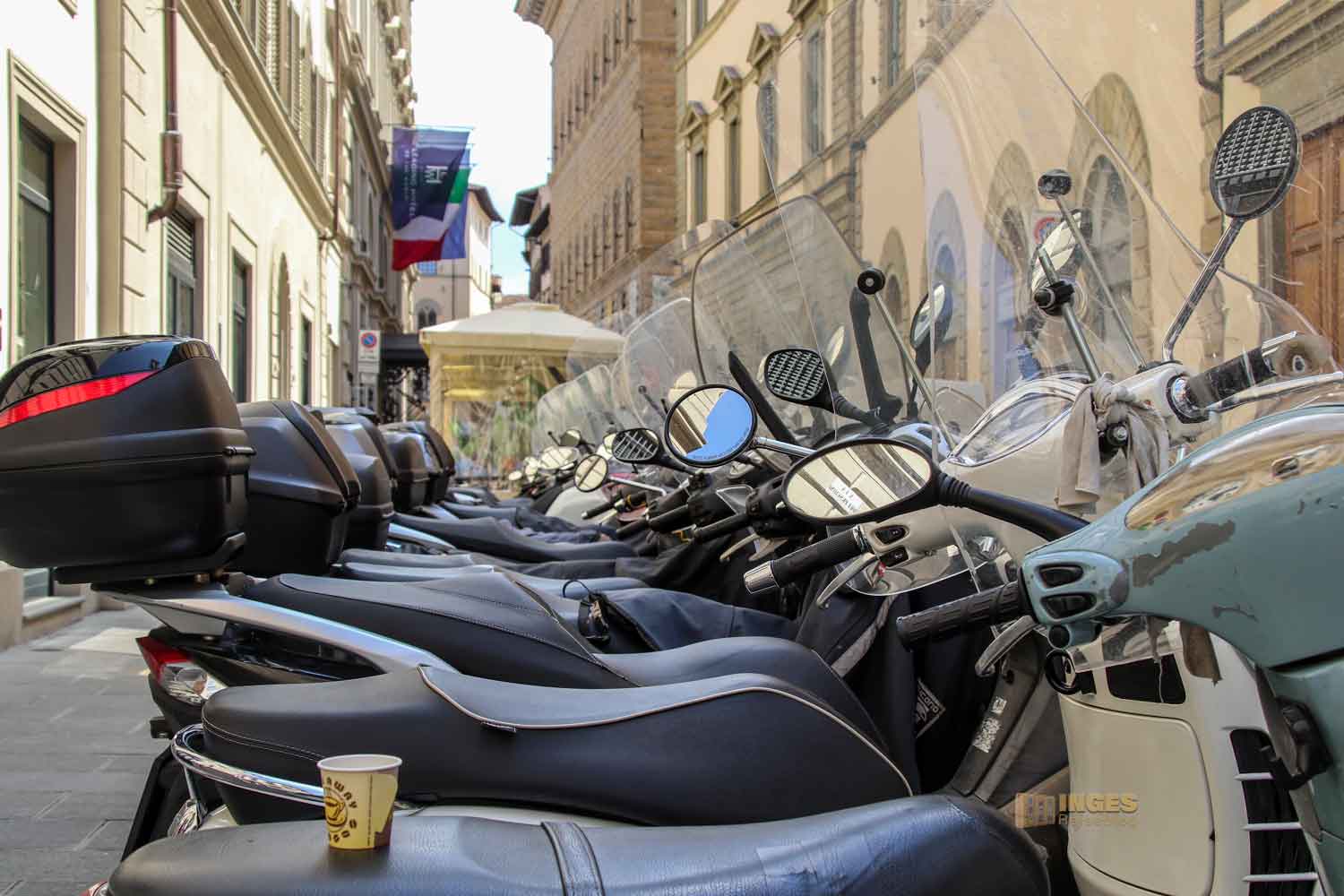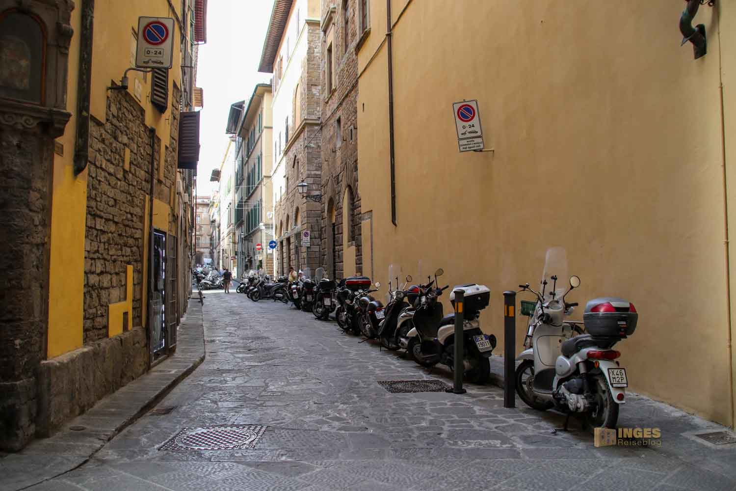 Ob er sich da in der Stadt schon aus der Auswahl der italienischen Fortbewegungsmittel einen ausgeguckt hat? Keine Ahnung, aber fein säuberlich aufgereiht standen DIE Verkehrsmittel, die die Florentiner in ihrer Stadt brauchen 🙂
